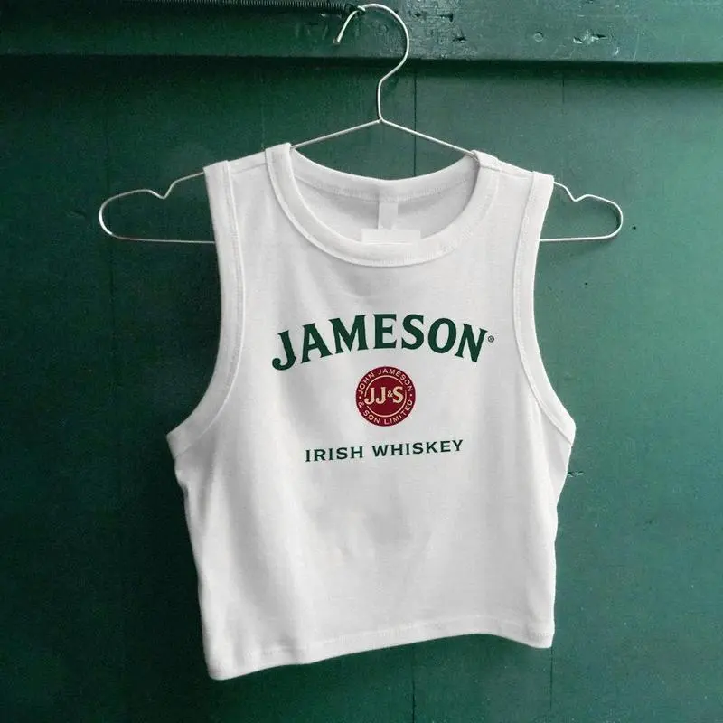 5. J@meson Ir!sh Whiskey Top, Micro Rib Tank Crop tank, St Patrick's Day Shirt, Summer Whiskey Graphic Tank Top, Y2K Jameson Tee, Stylish Irish Whiskey Shirt, Casual Summer Top