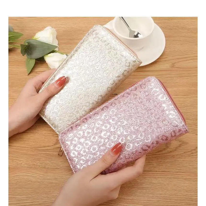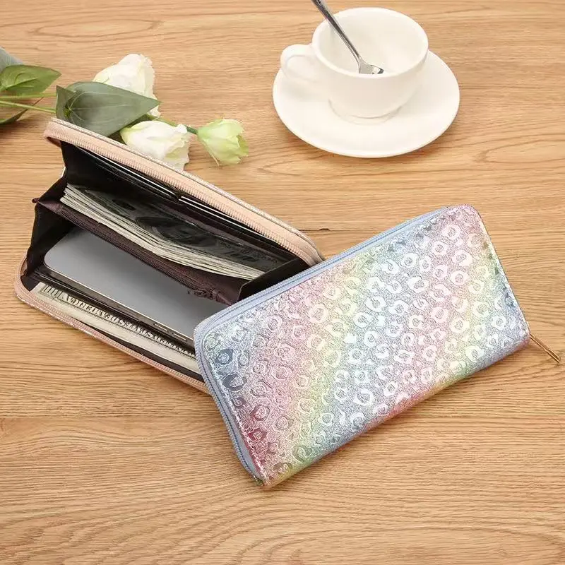 Laser Zipper Bag Grid Pattern Triangle Mermaid Shining Pink Large Wallet Women's Bag