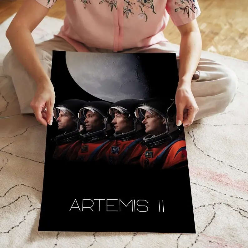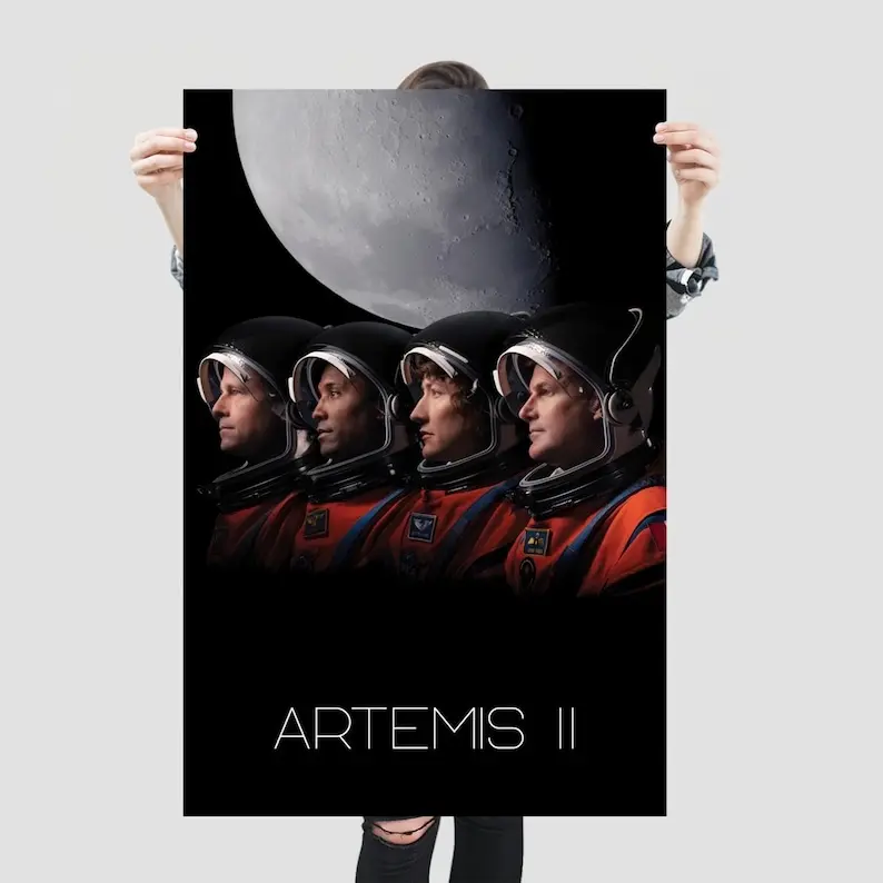 Artemis II Astronaut Moon Poster , NASA Inspired Space Crew Wall Art Print
