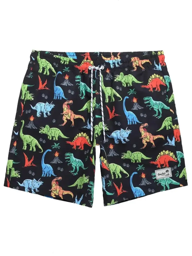 5. Men's Dinosaur Print Swim Trunks, Regular Fit Casual Comfy Swim Shorts for Summer, Men's Swimwear Bottoms for Beach Vacation, Swimming Shorts