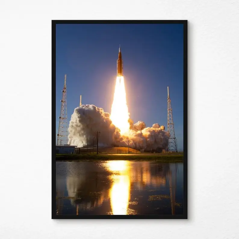 Artemis II Launch Poster, NASA Moon Mission Print, Rocket Liftoff Wall Art