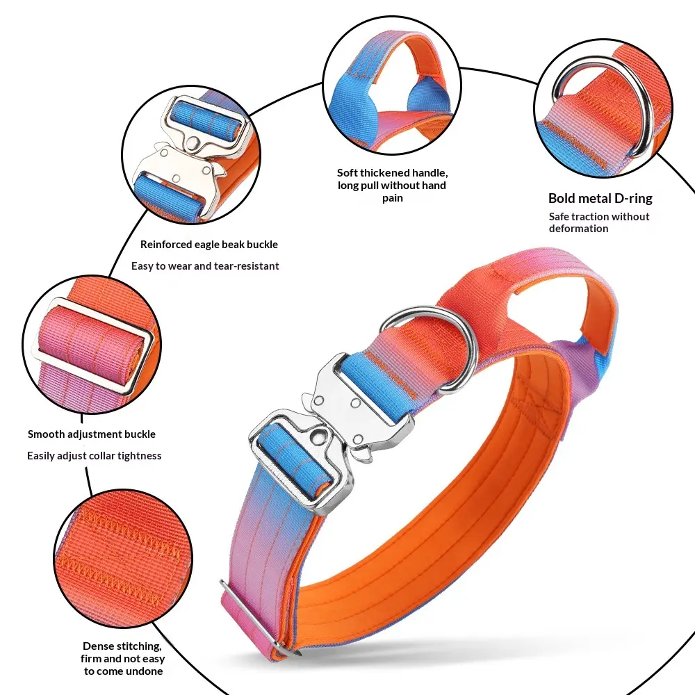 Gradient Tactical Dog Collar Heavy Duty Adjustable Pet Collar with Control Handle and Metal Buckle for Medium Large Dogs
