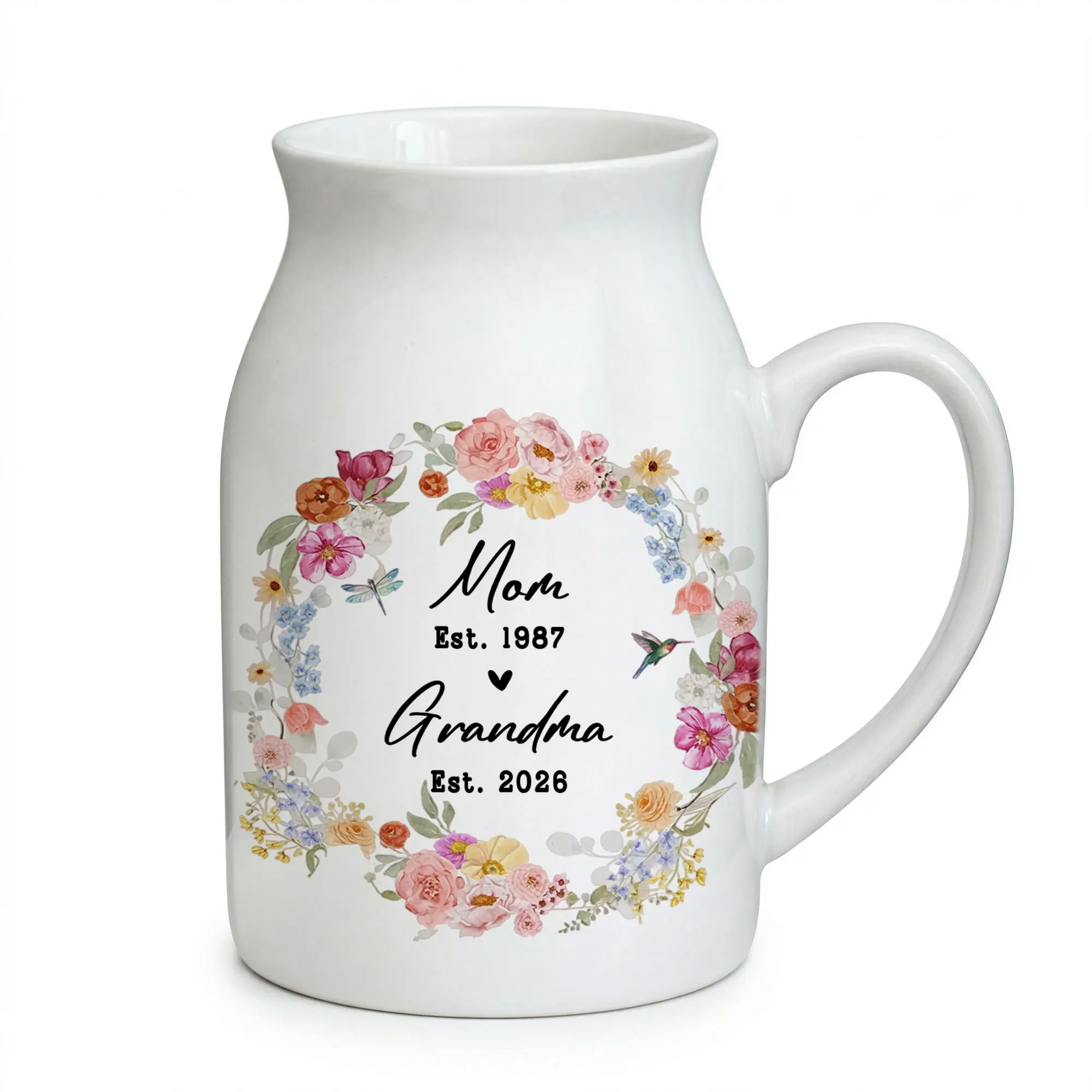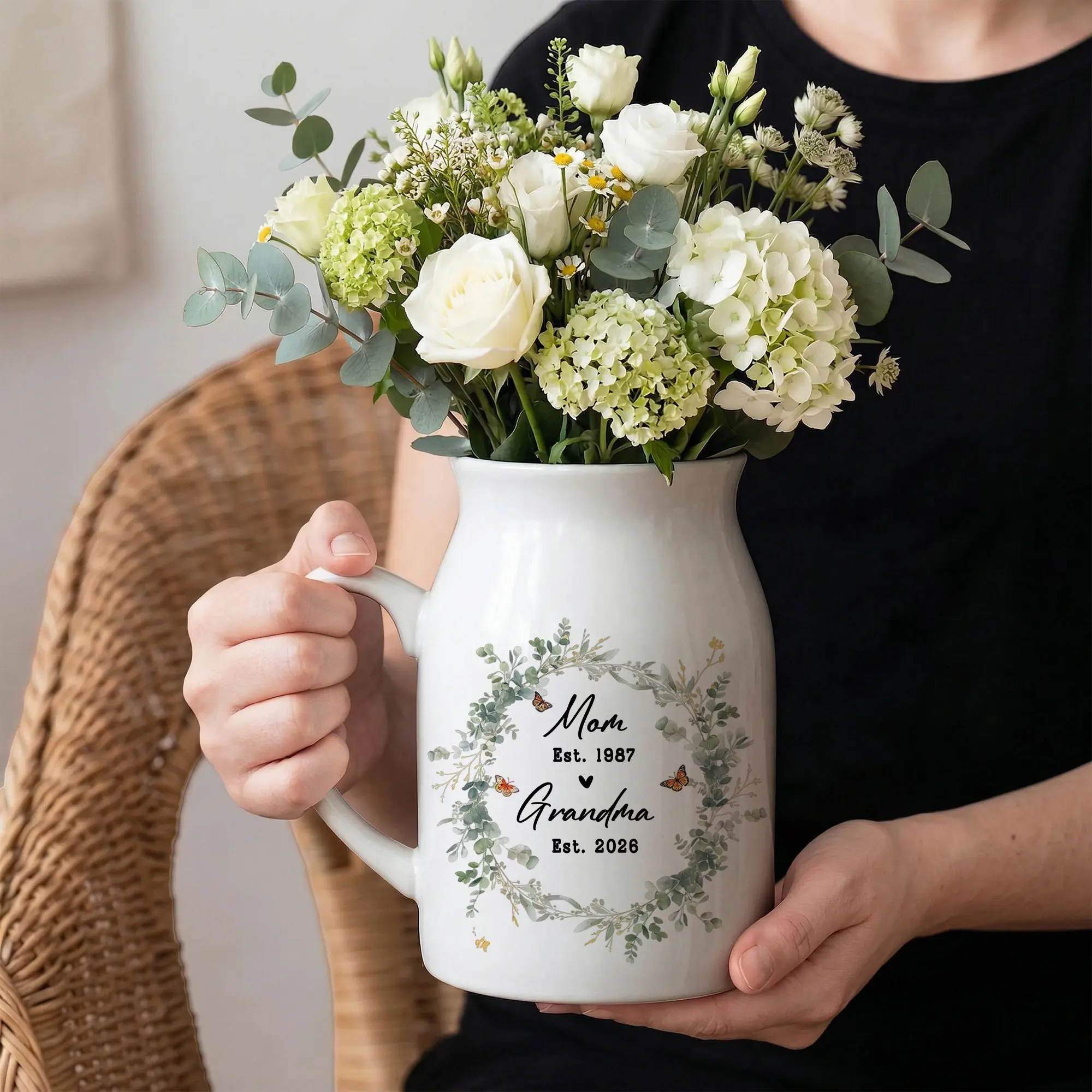 Honoring Her Journey: Personalized "Mom to Grandma" Ceramic Vase
