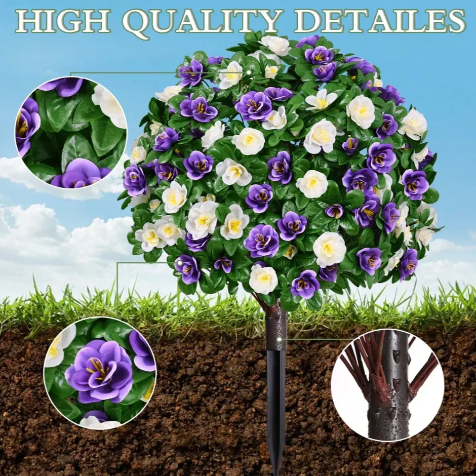 2 Pack Artificial Flowers Topiary For Outdoors,Artificial Topiary Ball Trees Flower Azalea With Ground Spike,Fake Plants UV Resistant Faux Bushes Shrubs For Indoor Outside Garden Festival Decor