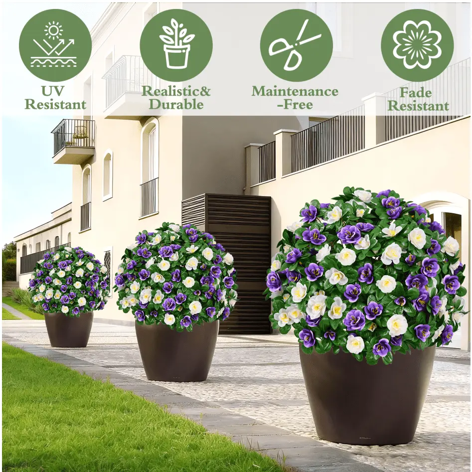 COROXAS 12 Bundles Faux Outside Boxwood UV Resistant Fake Outdoor Flowers Safe Colorful Decor for Mom Approved Home Garden Kids' Party
