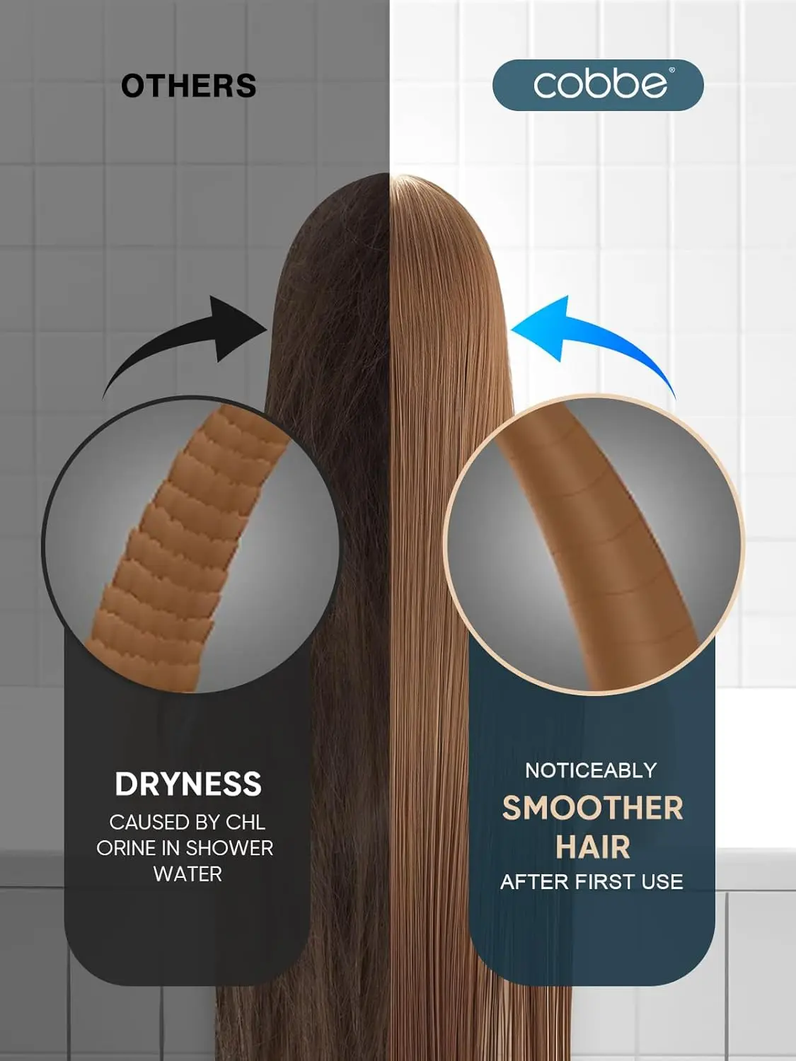 Made of activated carbon, it absorbs 99% of chlorine and impurities. Note: Poor water quality may slow water flow within a week. Replace quickly to restore functionality. Cobbe has 18 years of expertise in bathroom filtration, ensuring optimal water quality in the U.S.