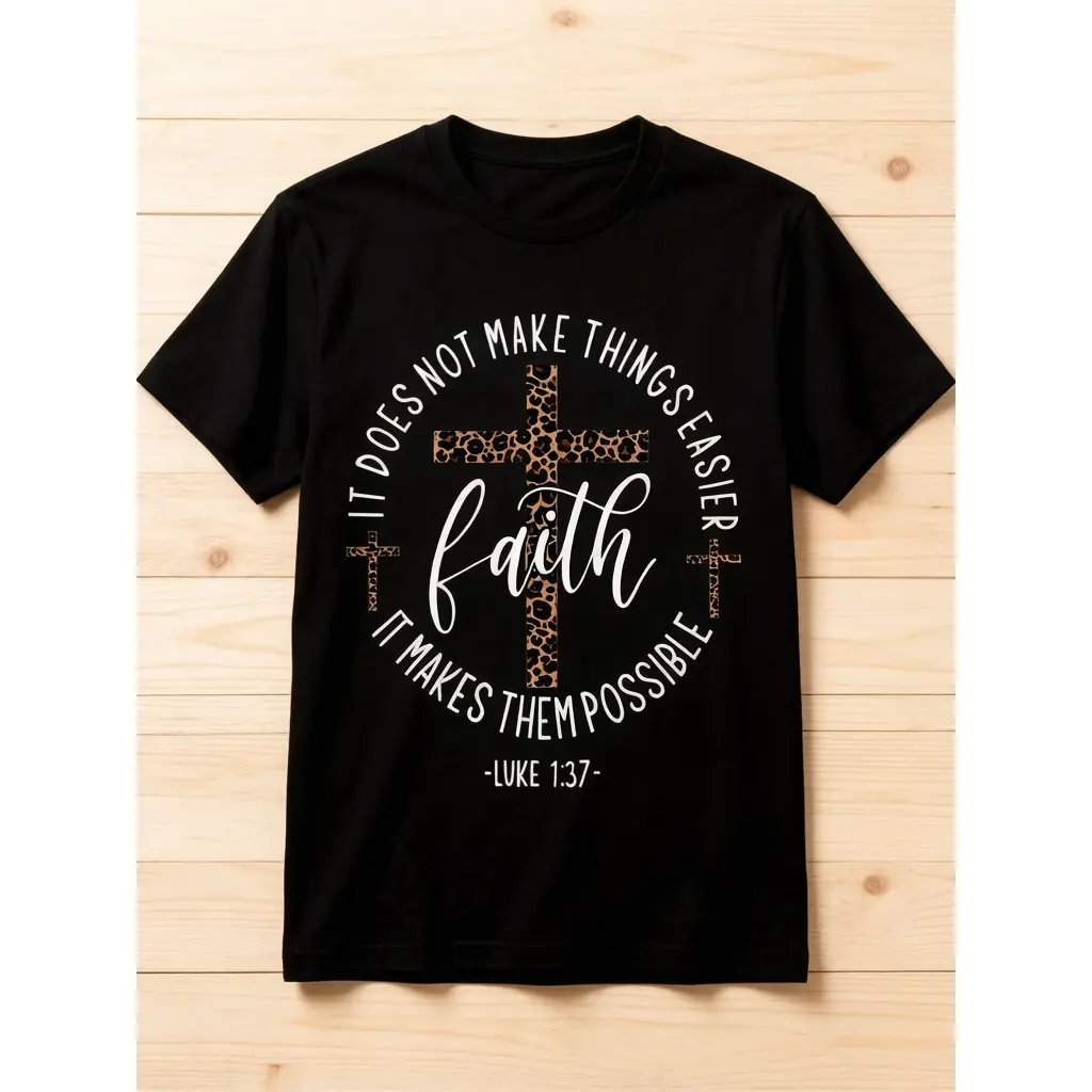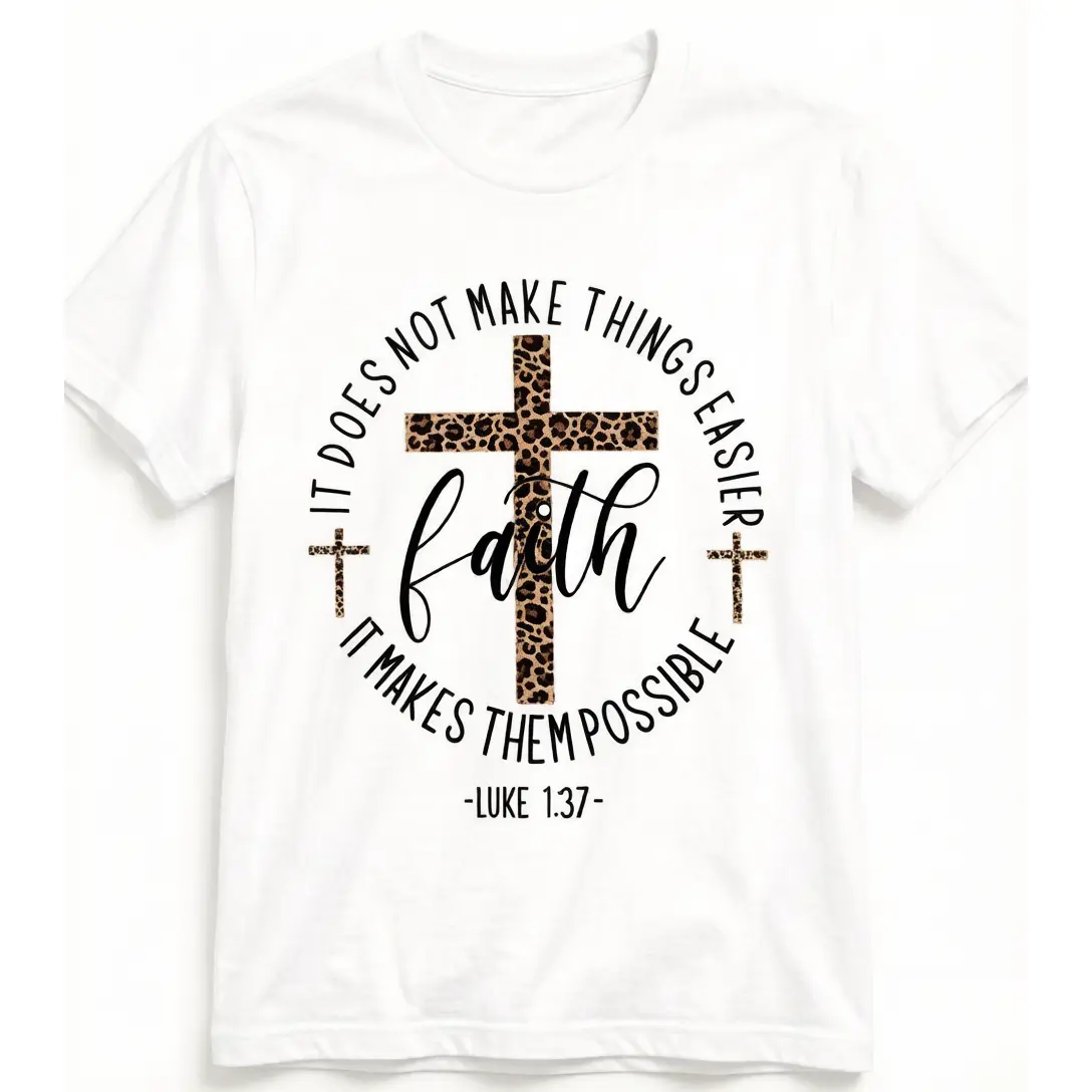 Women's Faith Cross Christmas Gift Graphic Print Crew Neck T-shirt Fitted Casual Top, Soft Fabric, All Seasons Wear
