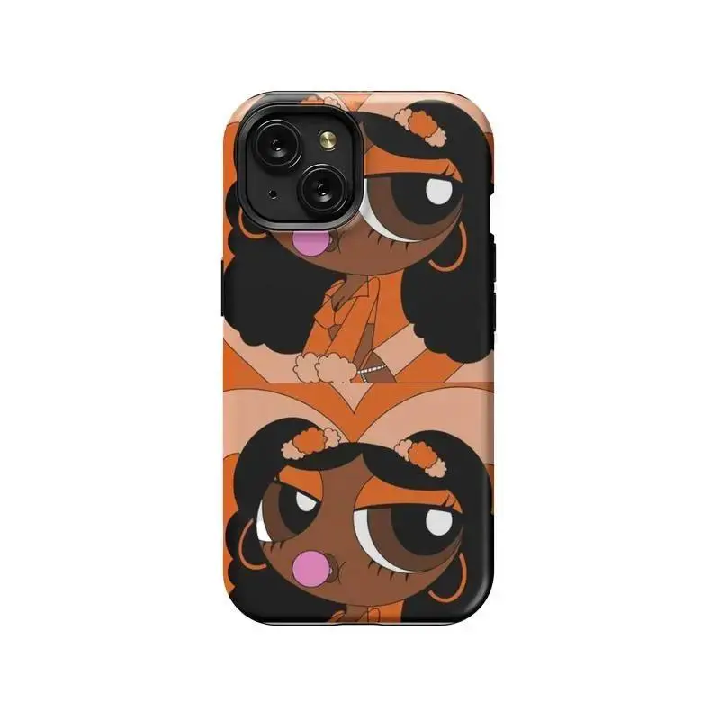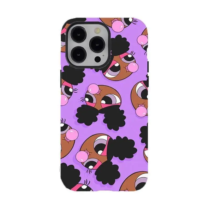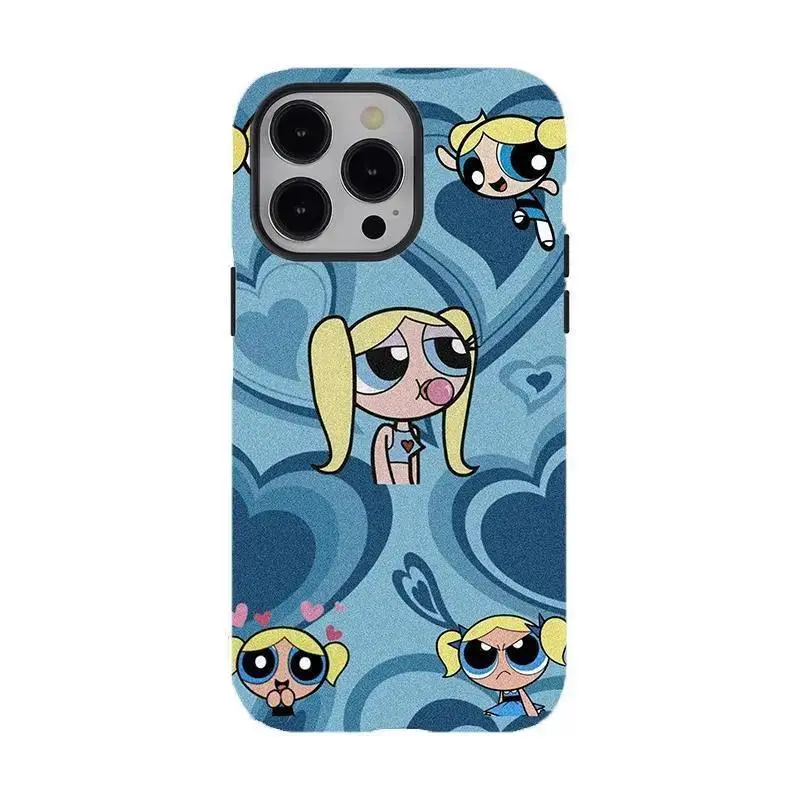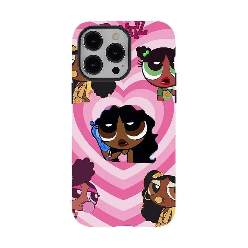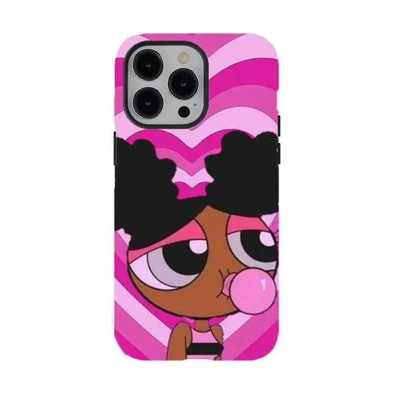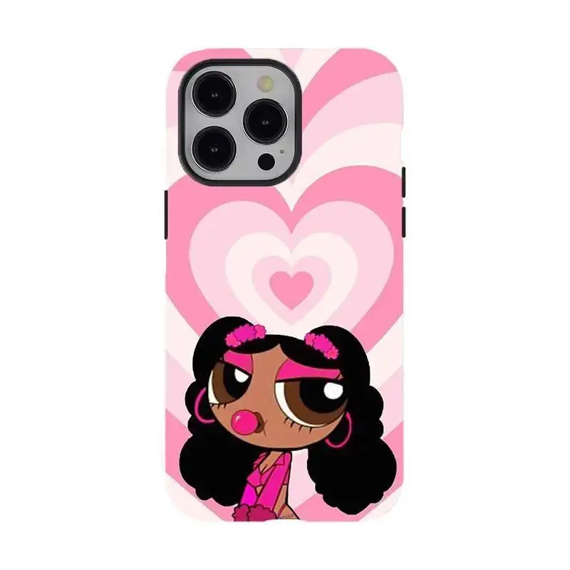 Y2K Black P0werpuff Girls Case Phone Case Heart Graffiti Cartoon Style Phone Case Compatible for iPhone 17 16 15 14 13 12 and for Samsung S23-S25 Perfect Gift For Cute Girl