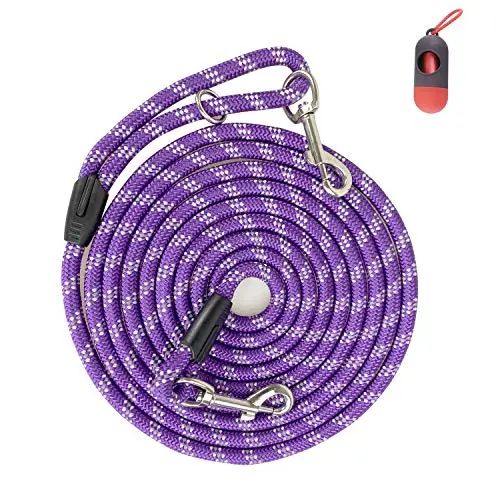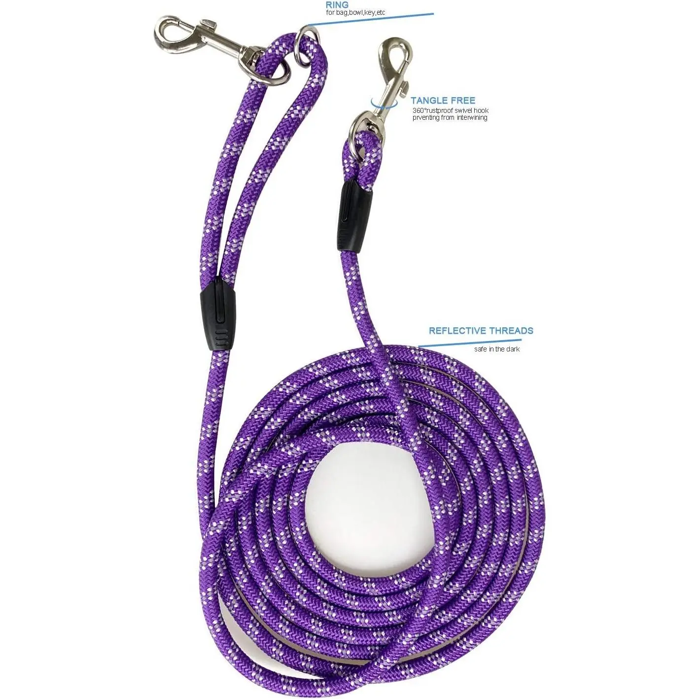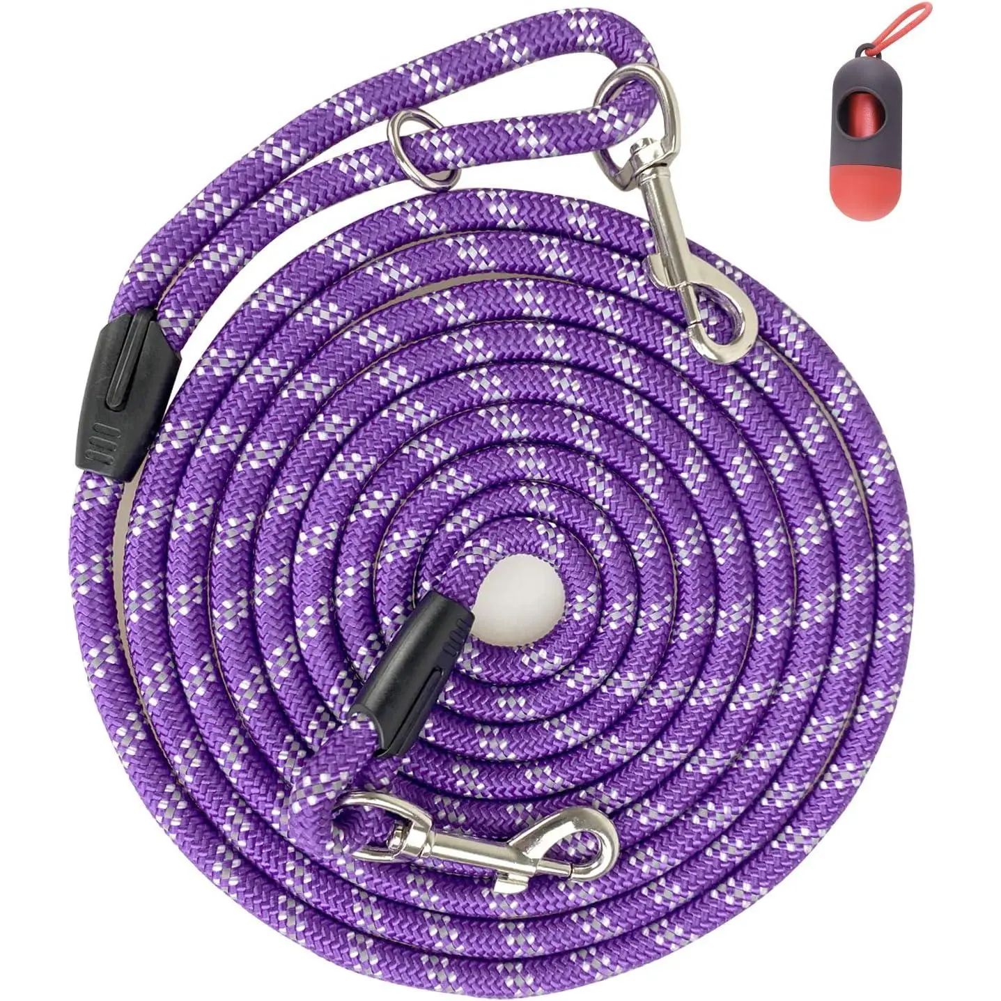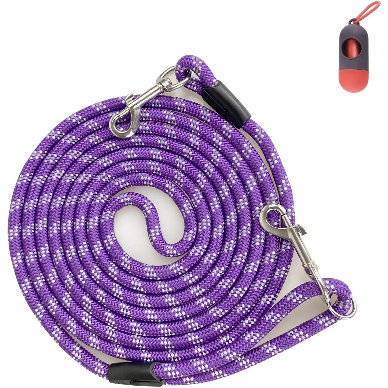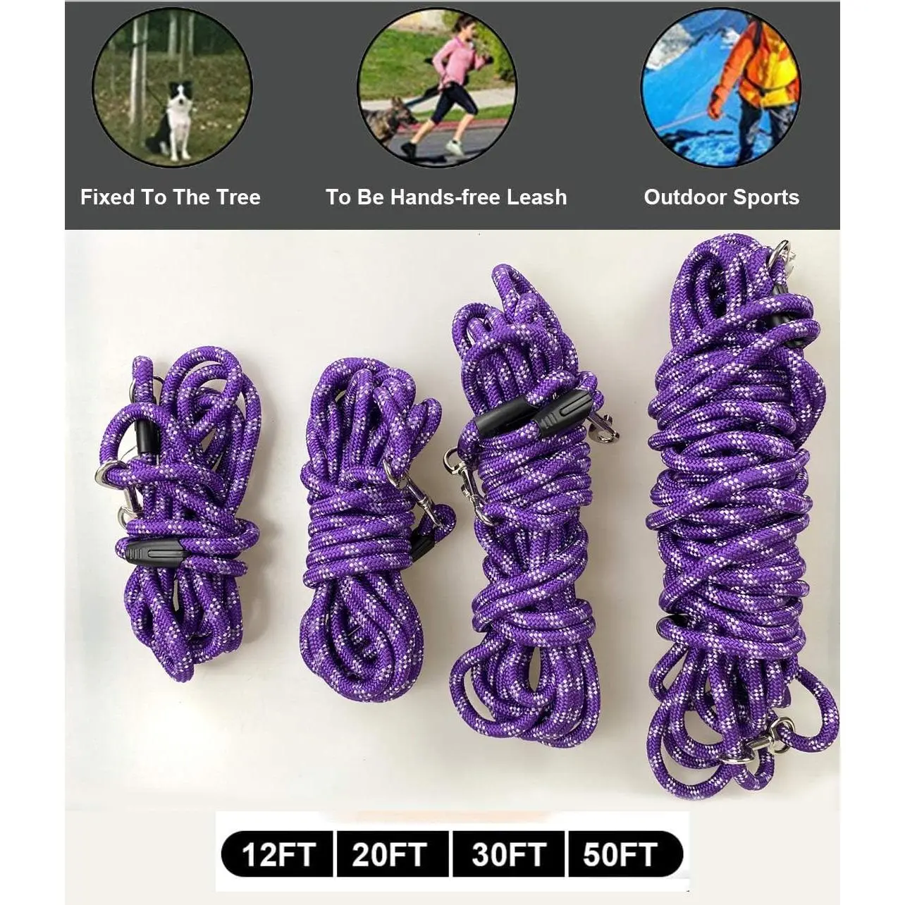 Long Rope Dog Leash for Dog Training 12FT 20FT 30FT 50FT, Reflective Threads Dog Cat Leashes Tie-Out Check Cord Recall Training Agility Lead for Large Medium Small Dogs (Purple, 10mm*12ft,)