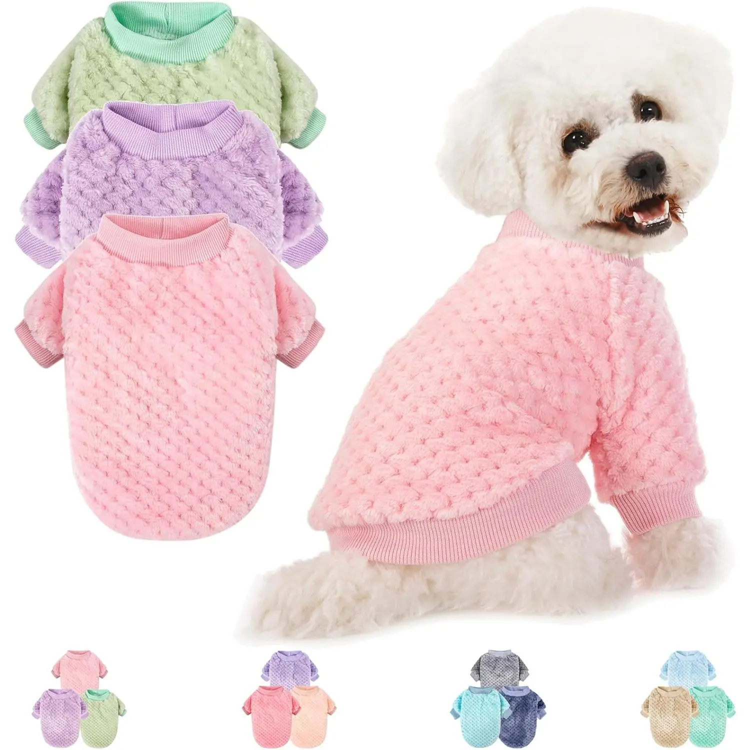 Dog Sweater, 3 Pack Dog Sweaters for Small Medium Dogs or Cat, Warm Soft Flannel Pet Clothes for Dogs Girl or Boy, Dog Shirt Coat Jacket (Small, Pink+Purple+Light Green)