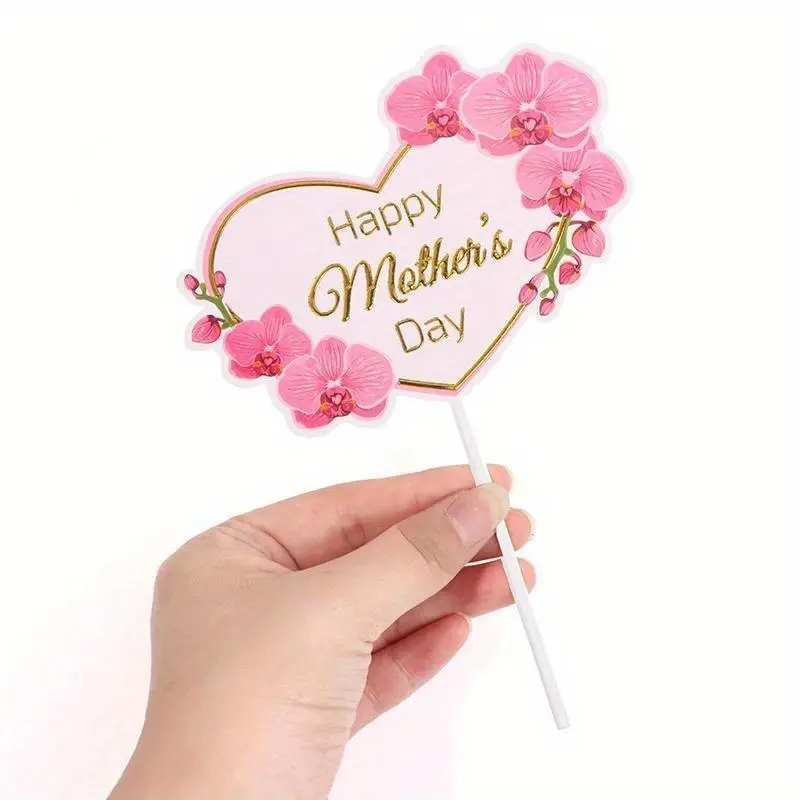 10 sets of Mother's Day cake decorations, pink heart-shaped flowers, rose decorations, paper cupcakes, desserts