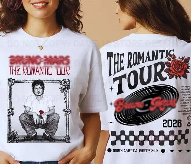 2026 Hot NEW Bruno "The Romantic" Tour Tee, Mars 2026 Music Hot New Album T-shirt, The Romantic Tour Merch, Unisex Y2K Cotton Tee, R&B Music Top, Graphic Tees, Concert Outfits
