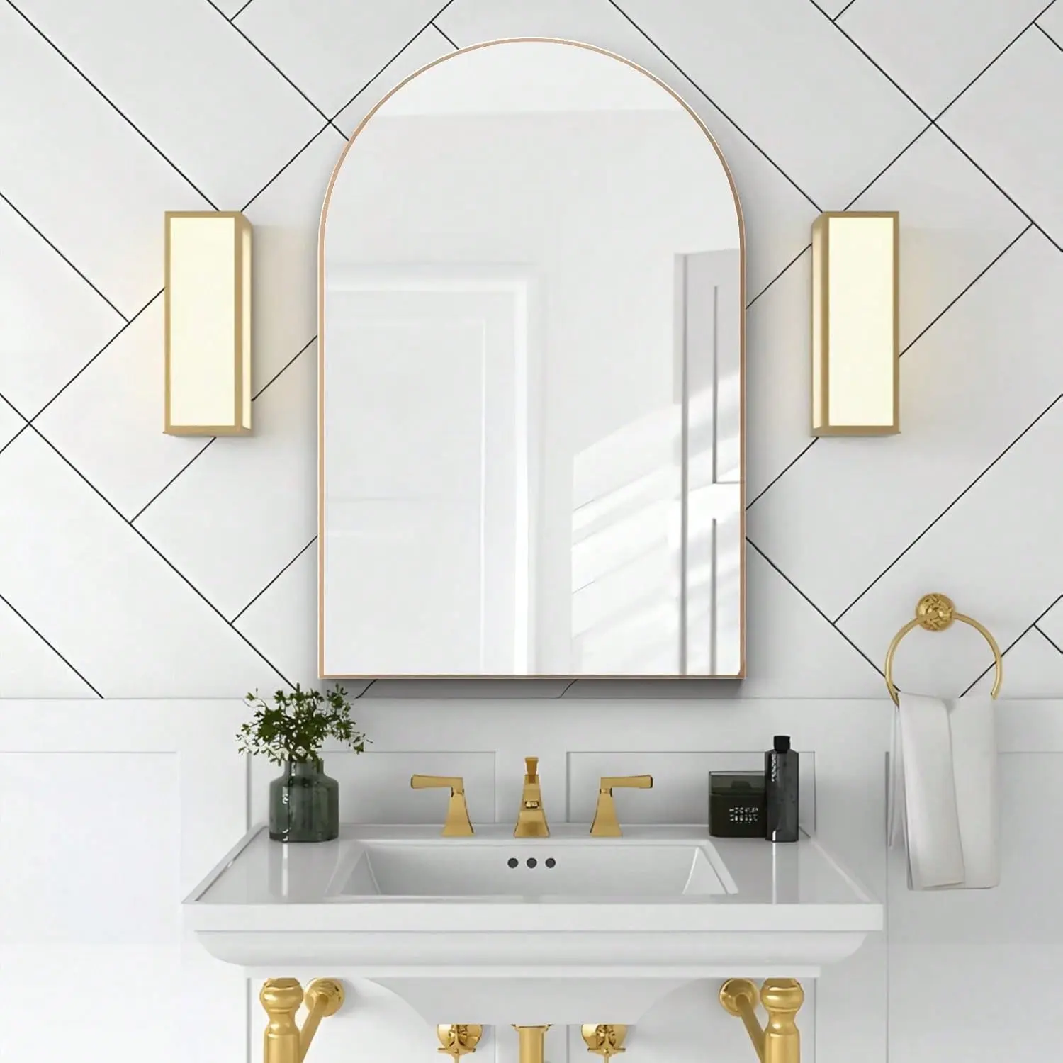 Arched Wall Mirror 30x20 Inch - Rust-Proof Metal Frame, Anti-Fog & Shatterproof For Bathroom Vanity, Bedroom, Entryway(Modern Luxury Gold/Black)