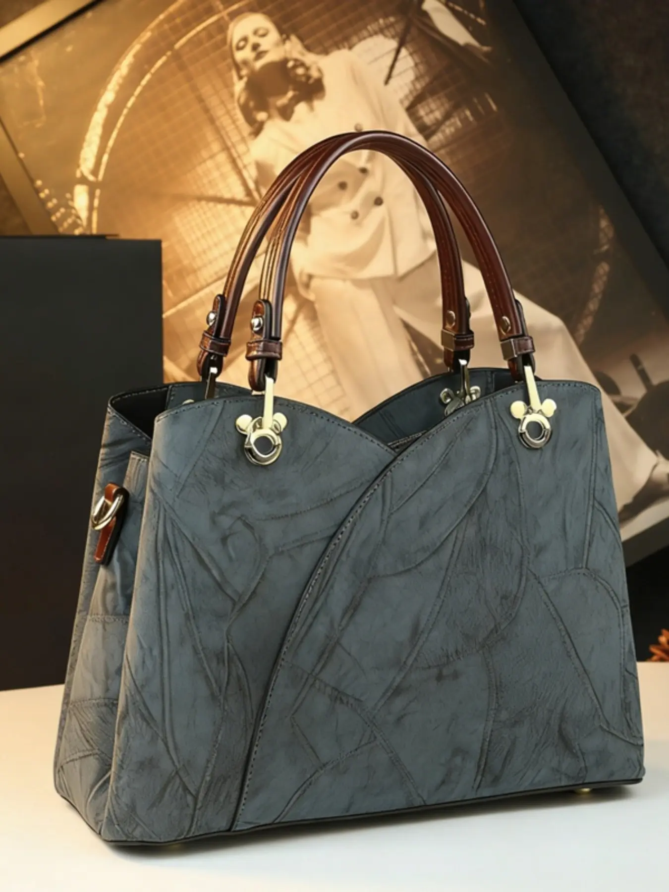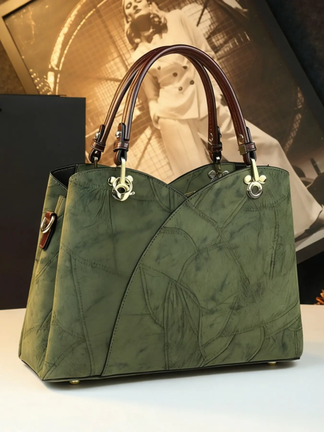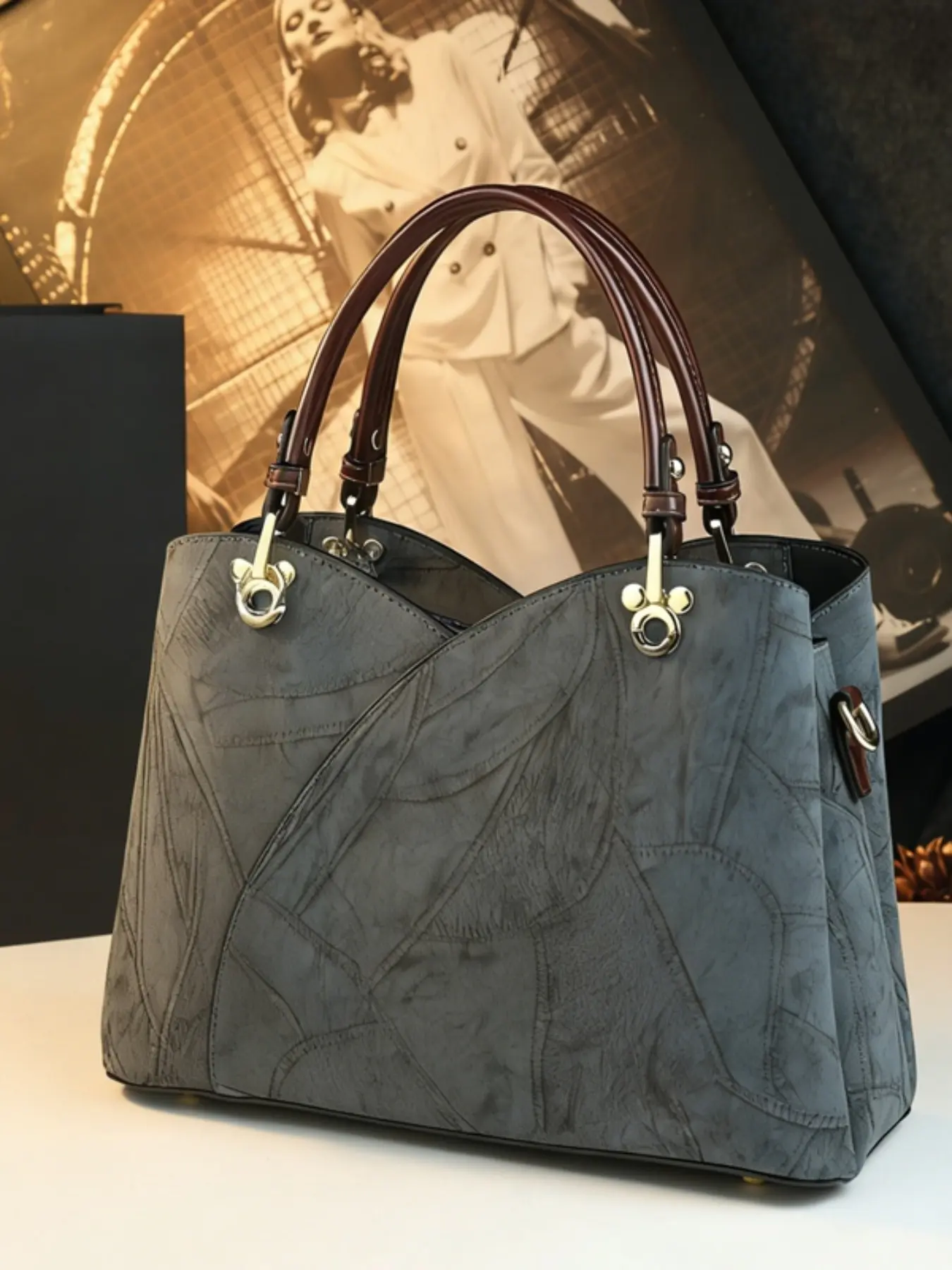 Elegant Vintage Patchwork Handbag, Large Capacity Commuter Tote Bag, Lightweight Luxury Mom Bag, Single Shoulder Crossbody Bag