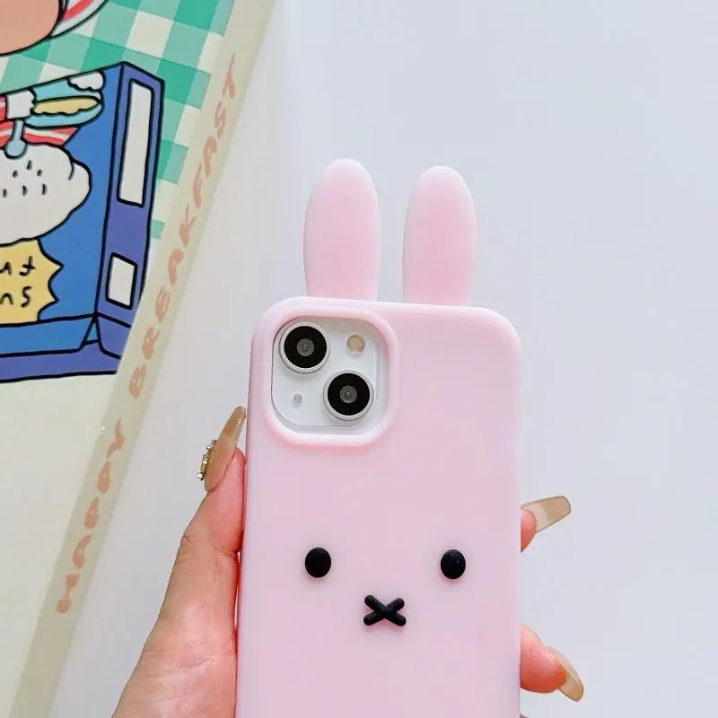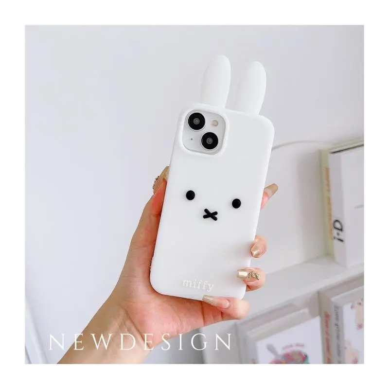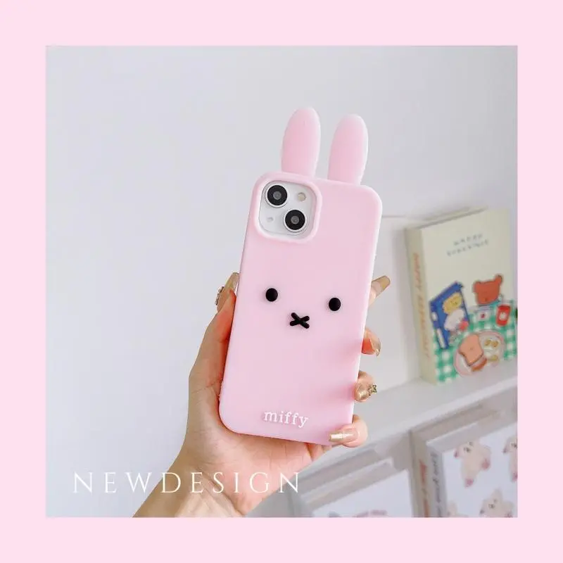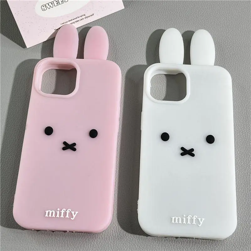 Luxury Cute Pink White Miffy silicone soft phone Case For iPhone 12 13 14 15 16 17 Pro Max Funny Cartoon long ear Miffy Cover