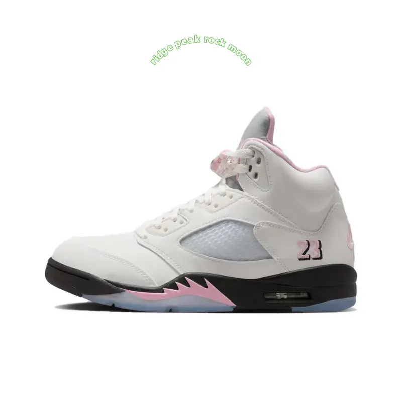White Smooth Leather High-Top Retro Basketball Shoes with Pink Reflective Mesh and Black Sawtooth Midsole