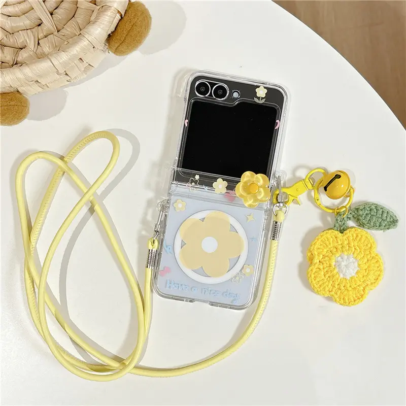Cute Small Flower Magnetic Phone Case For Samsung Galaxy Z Flip 7 6 5 Flip6 Flip7 Cover with Magsafe Stand Lanyard Cases Funda