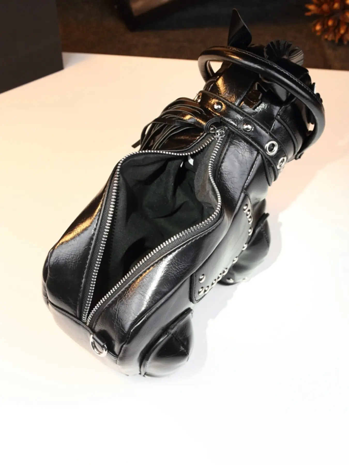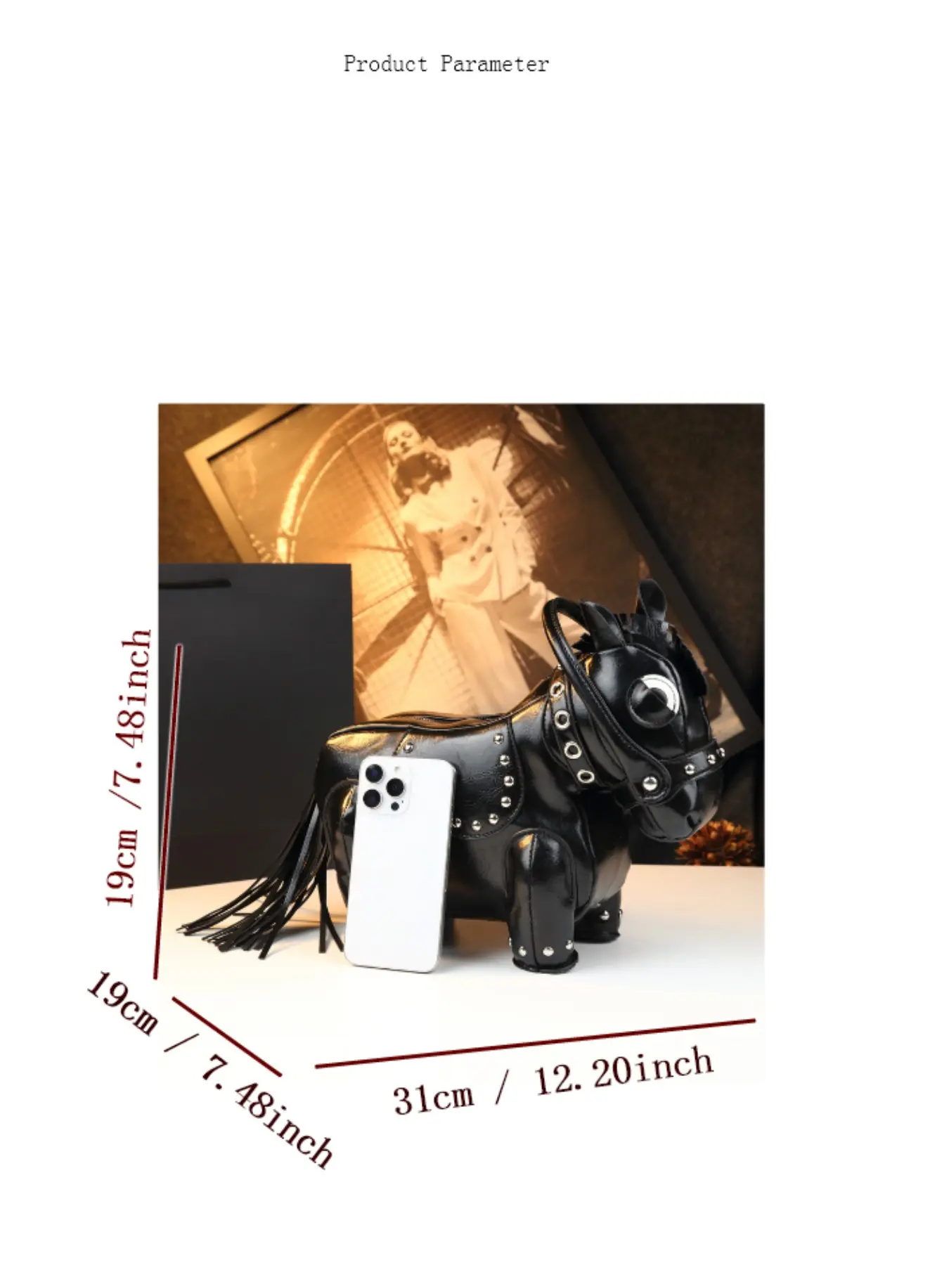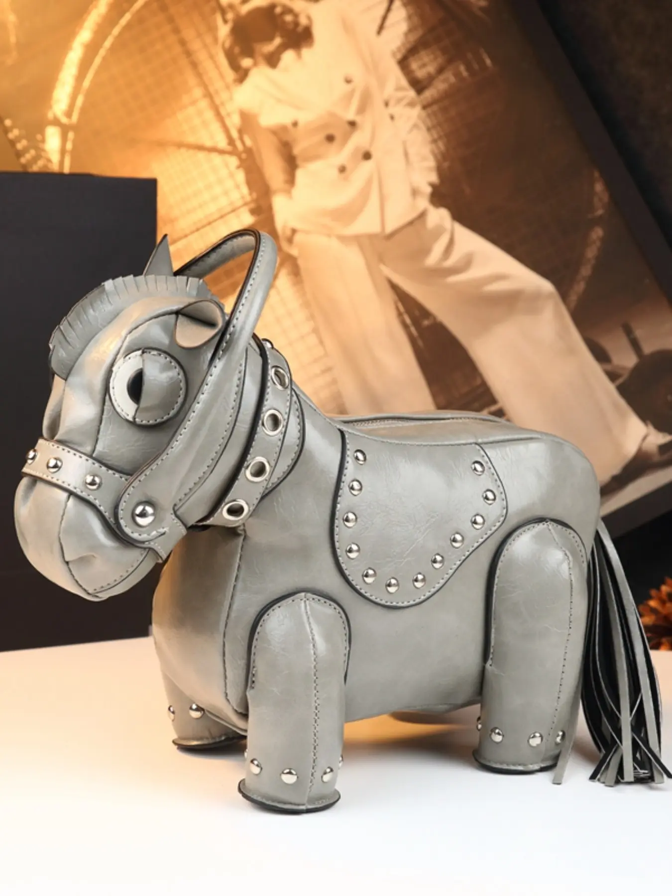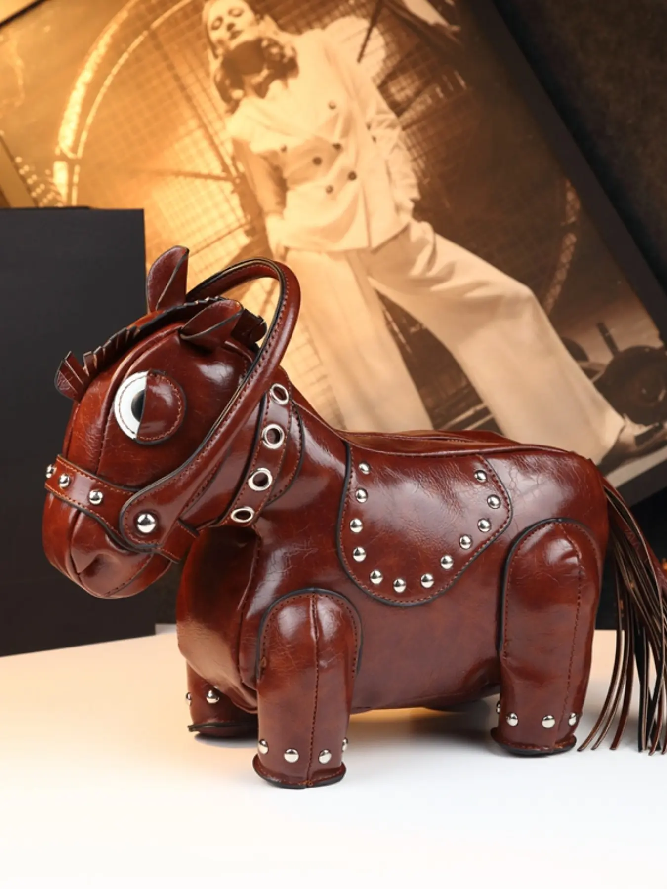 Unique Design Small Horse Bag for Women, Personalized Studs Fringe Animal Purse, Vintage Punk Style Handbag Shoulder Bag