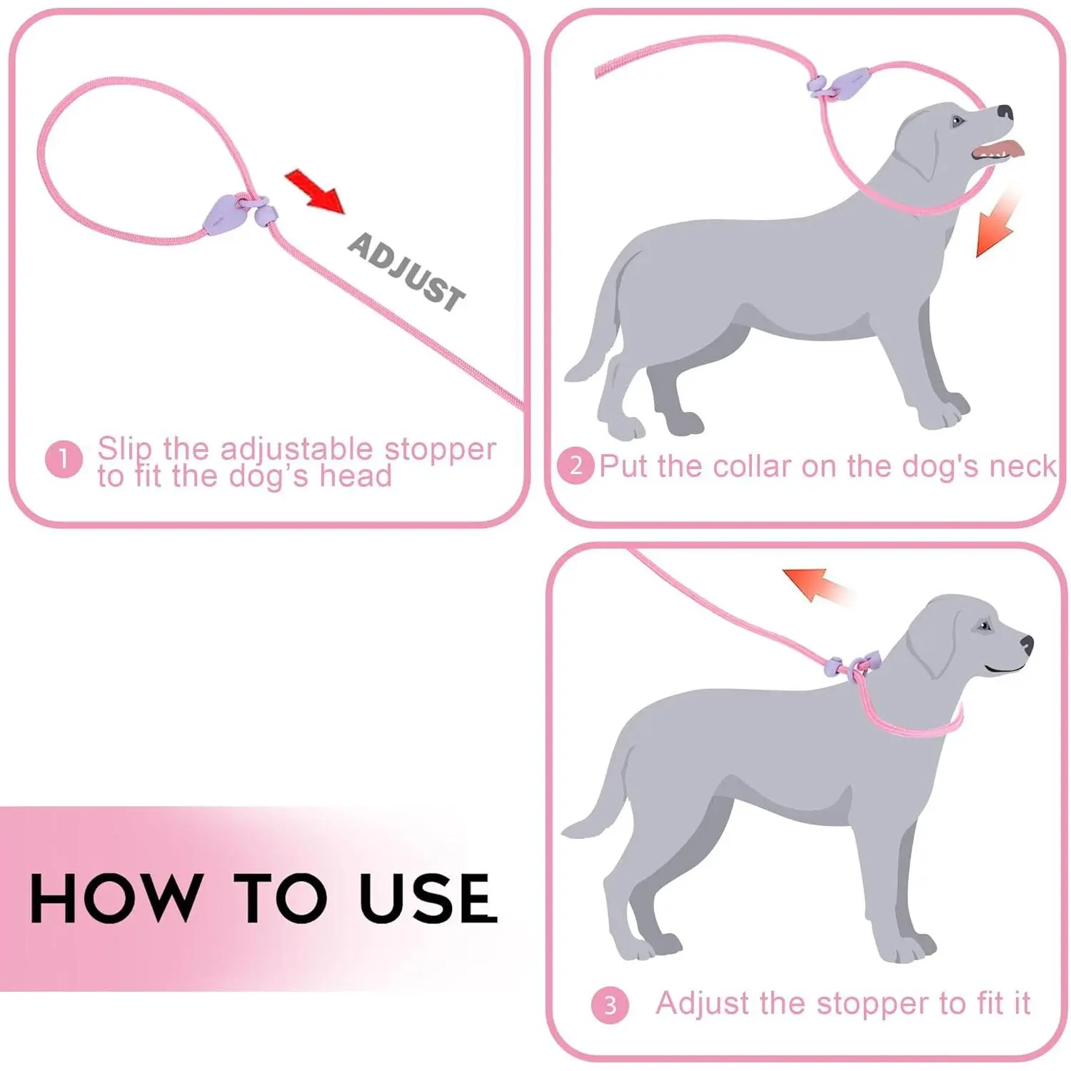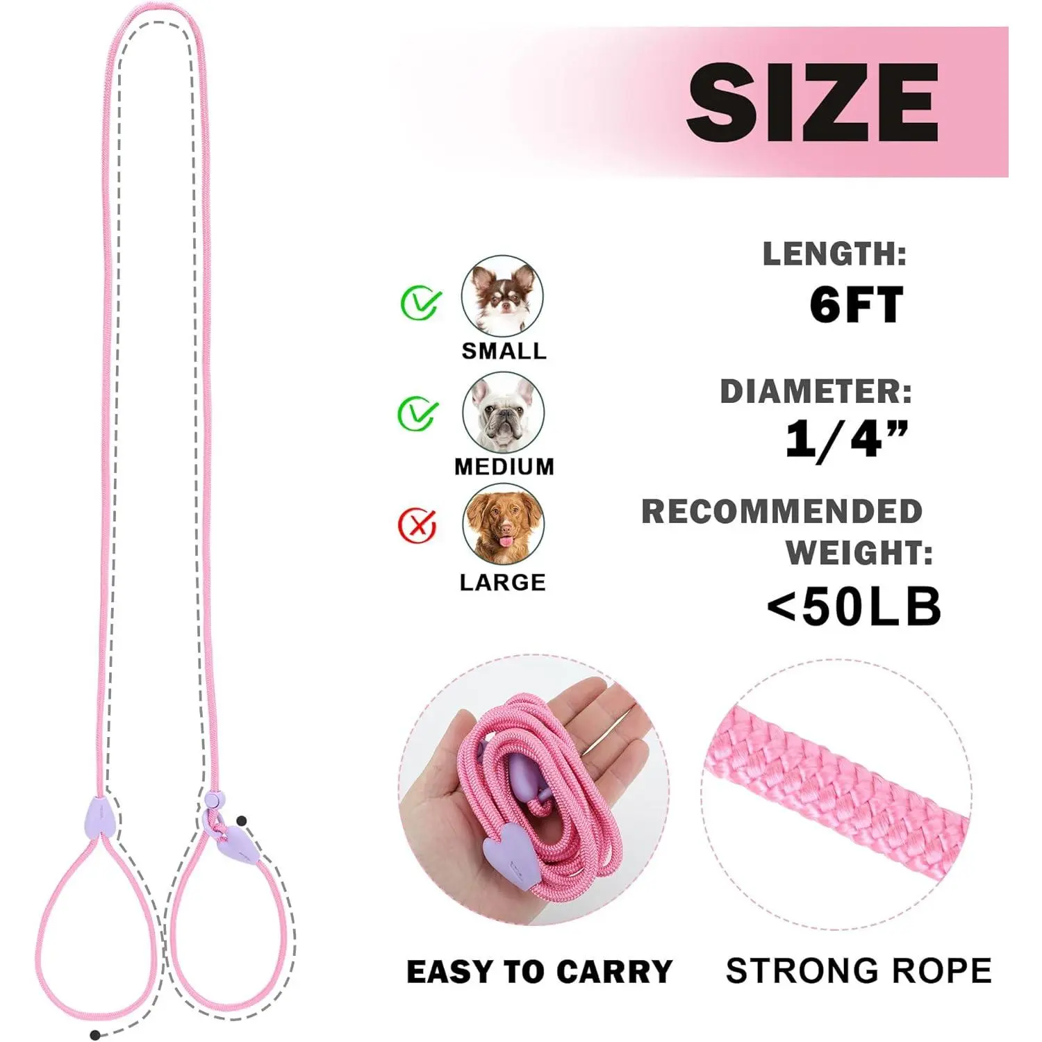 Slip Lead 6 FT Dog Training Leash - 6 Color Slip Leads for Medium Dogs - No Pull Dog Leash (Pink)