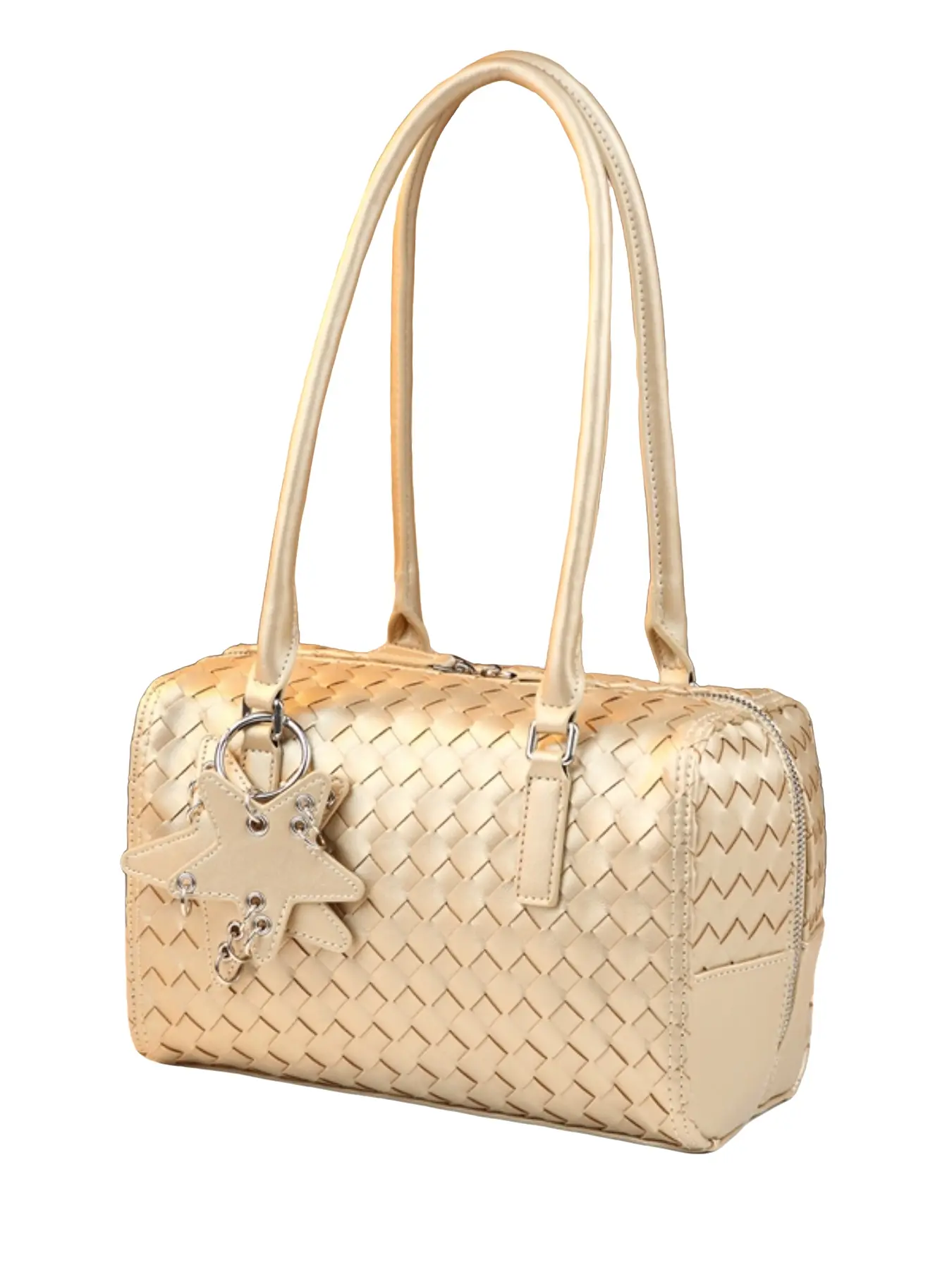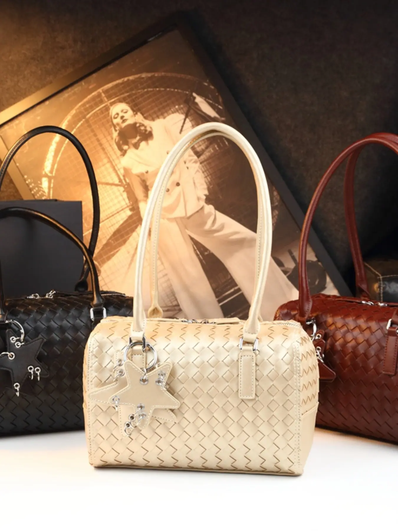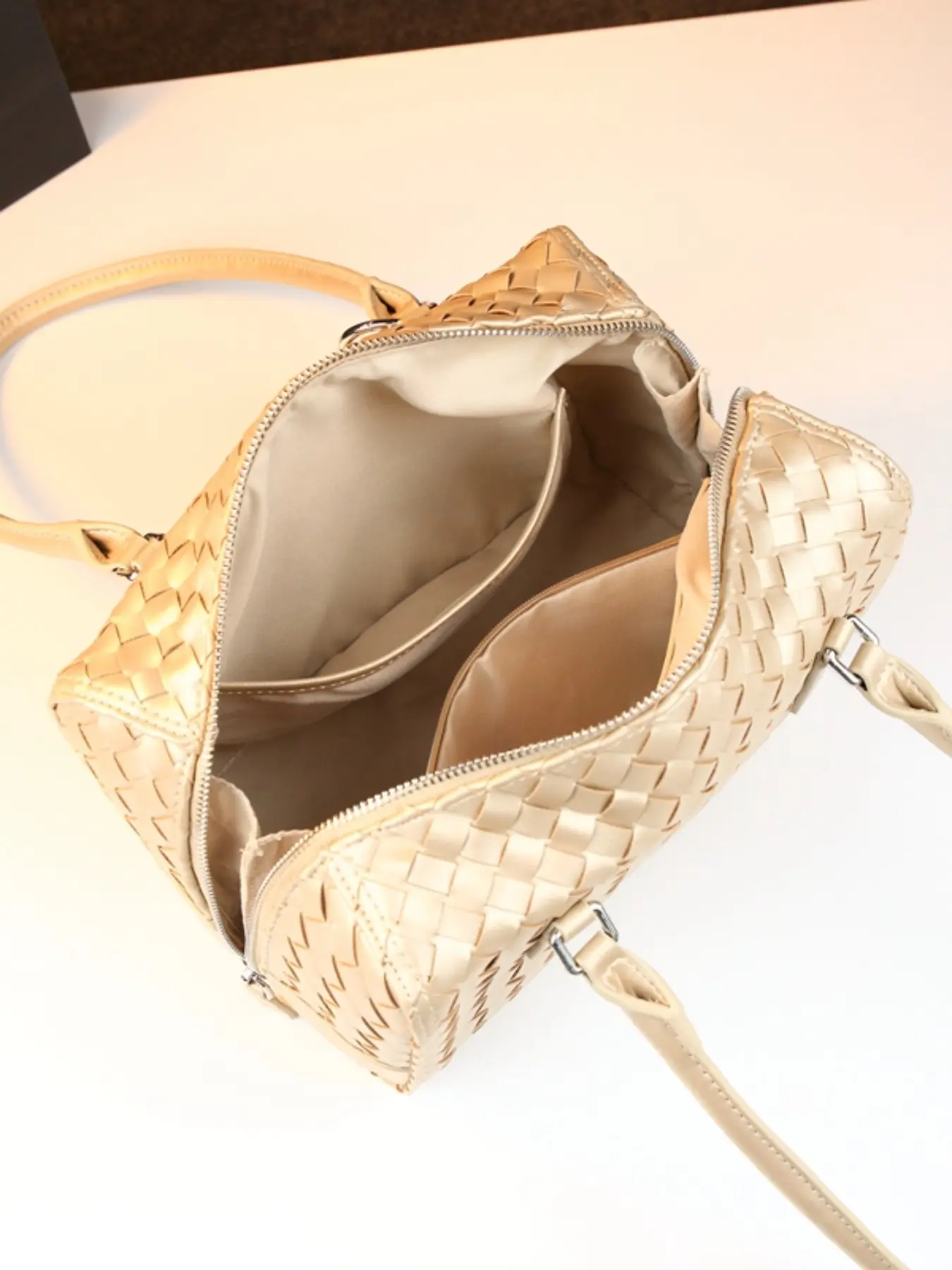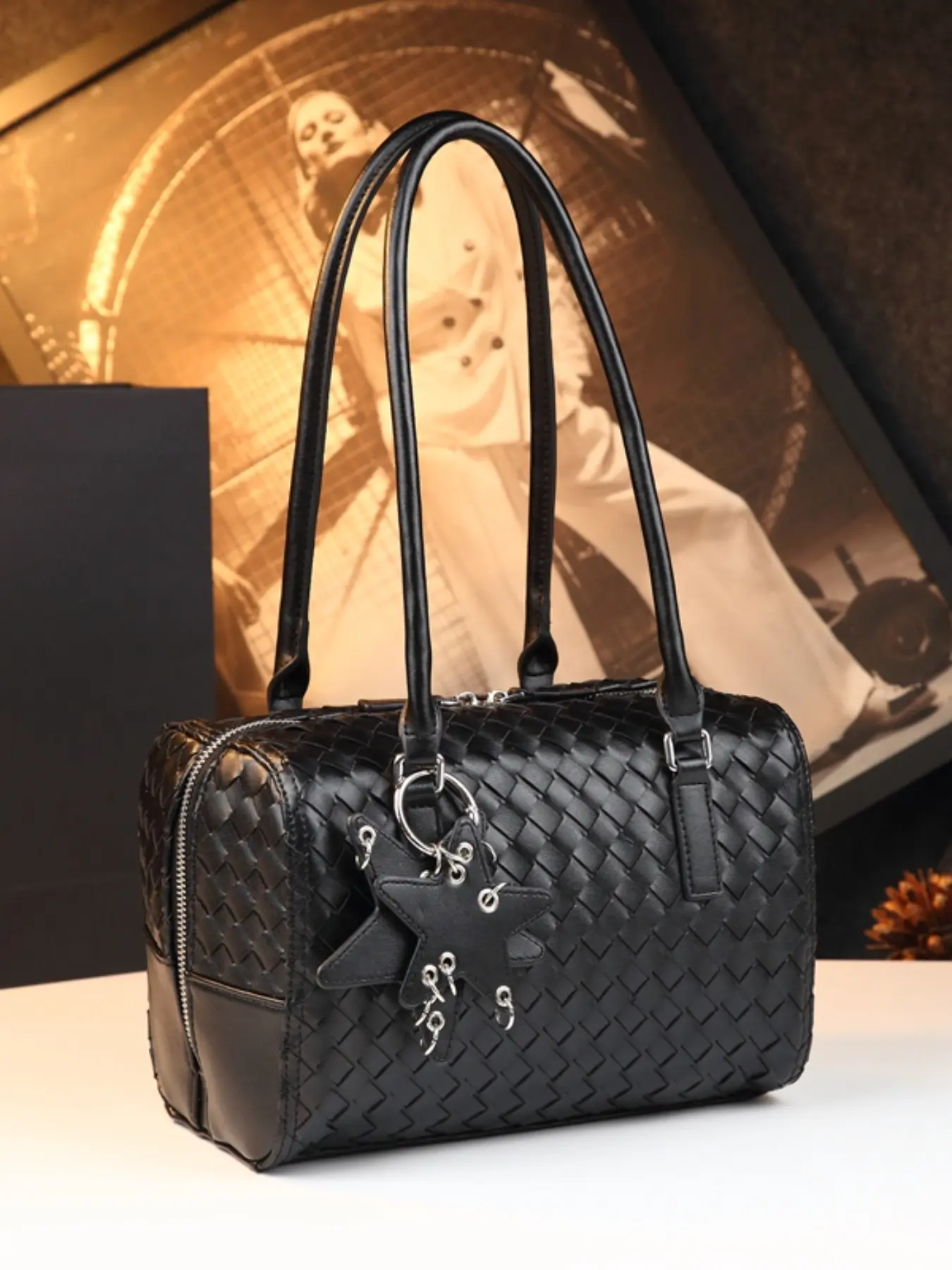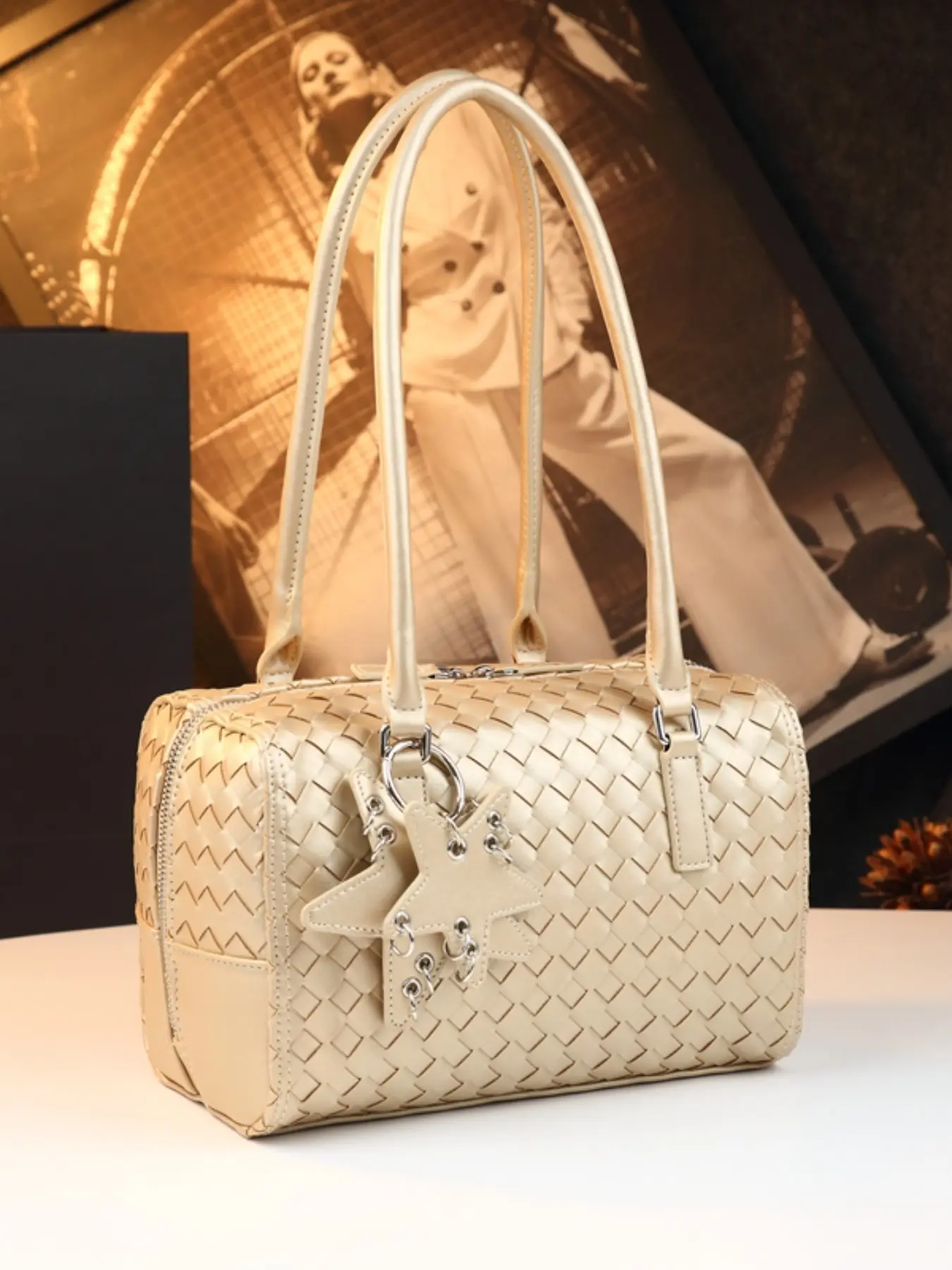 Elegant Woven Boston Bag for Women, Vintage Handbag Pillow Design, Unique Shoulder Crossbody Bag, Stylish and Versatile Accessory