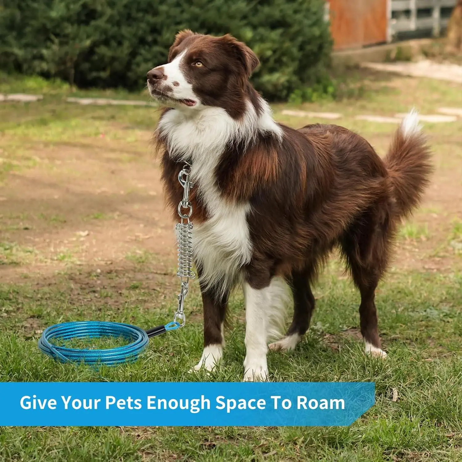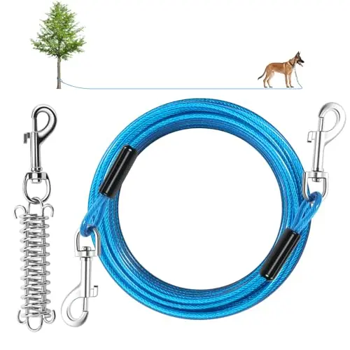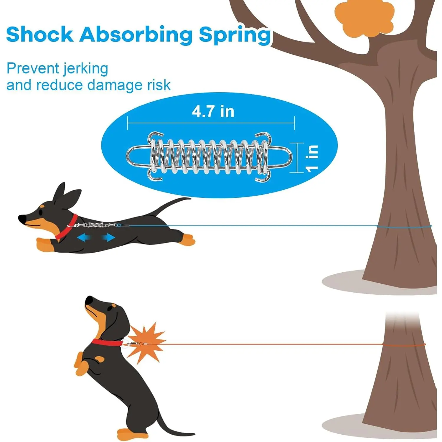 Dog Tie Out Cable, 30 FT Heavy Duty Dogs Lead Cable with Detachable Shock Spring, Dog Runner Chains for Outside Yard Camping Hold Small or Medium Dogs (30feet, up to 160lbs)