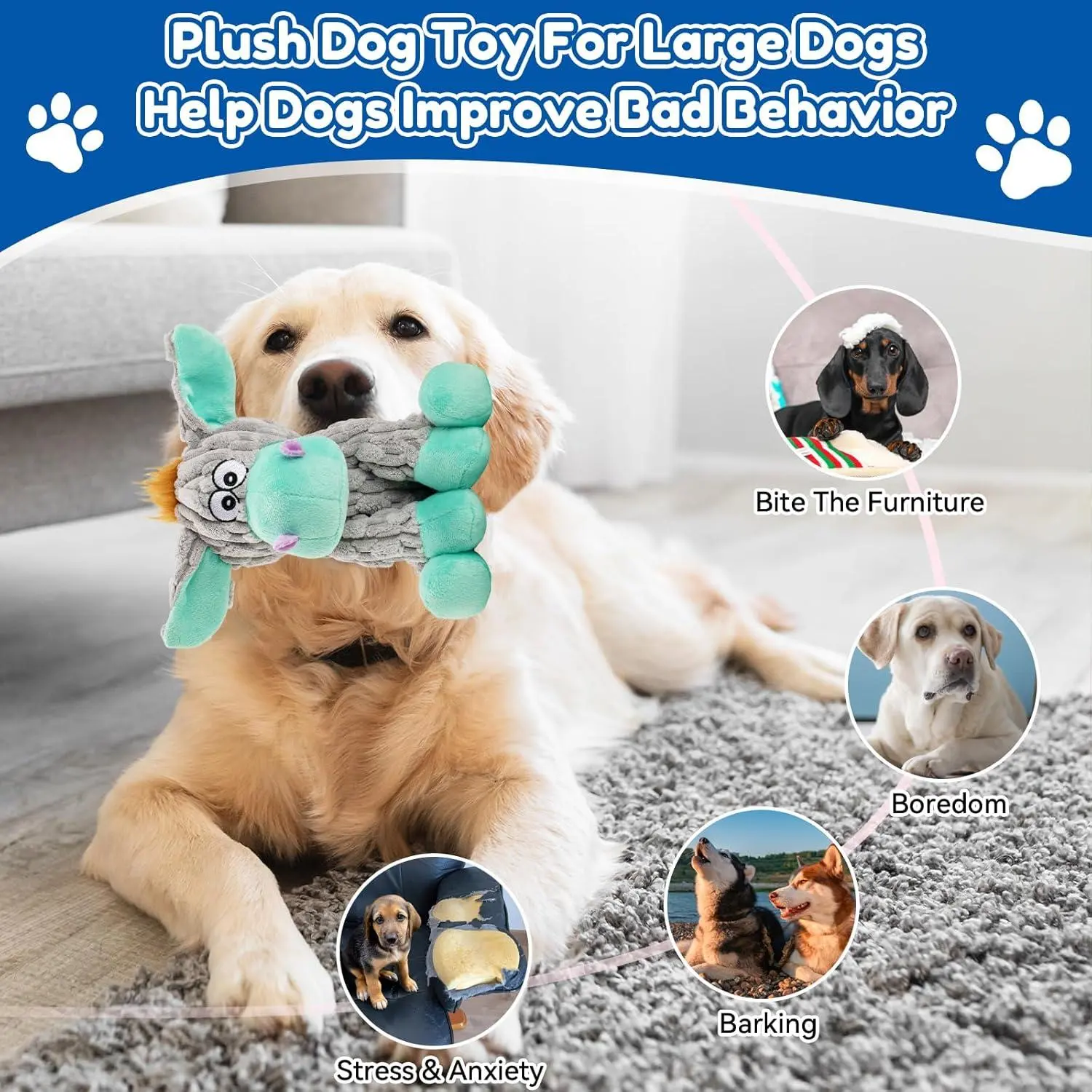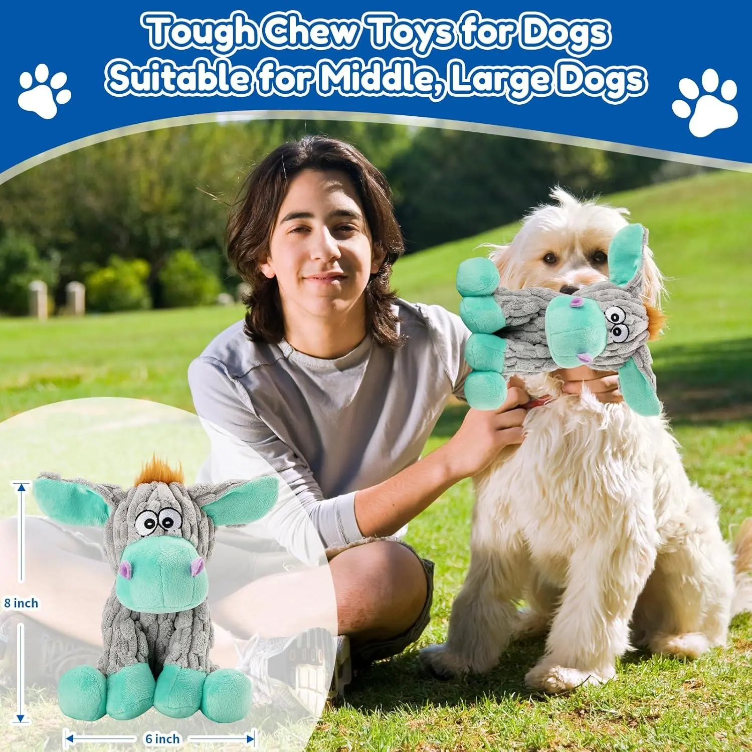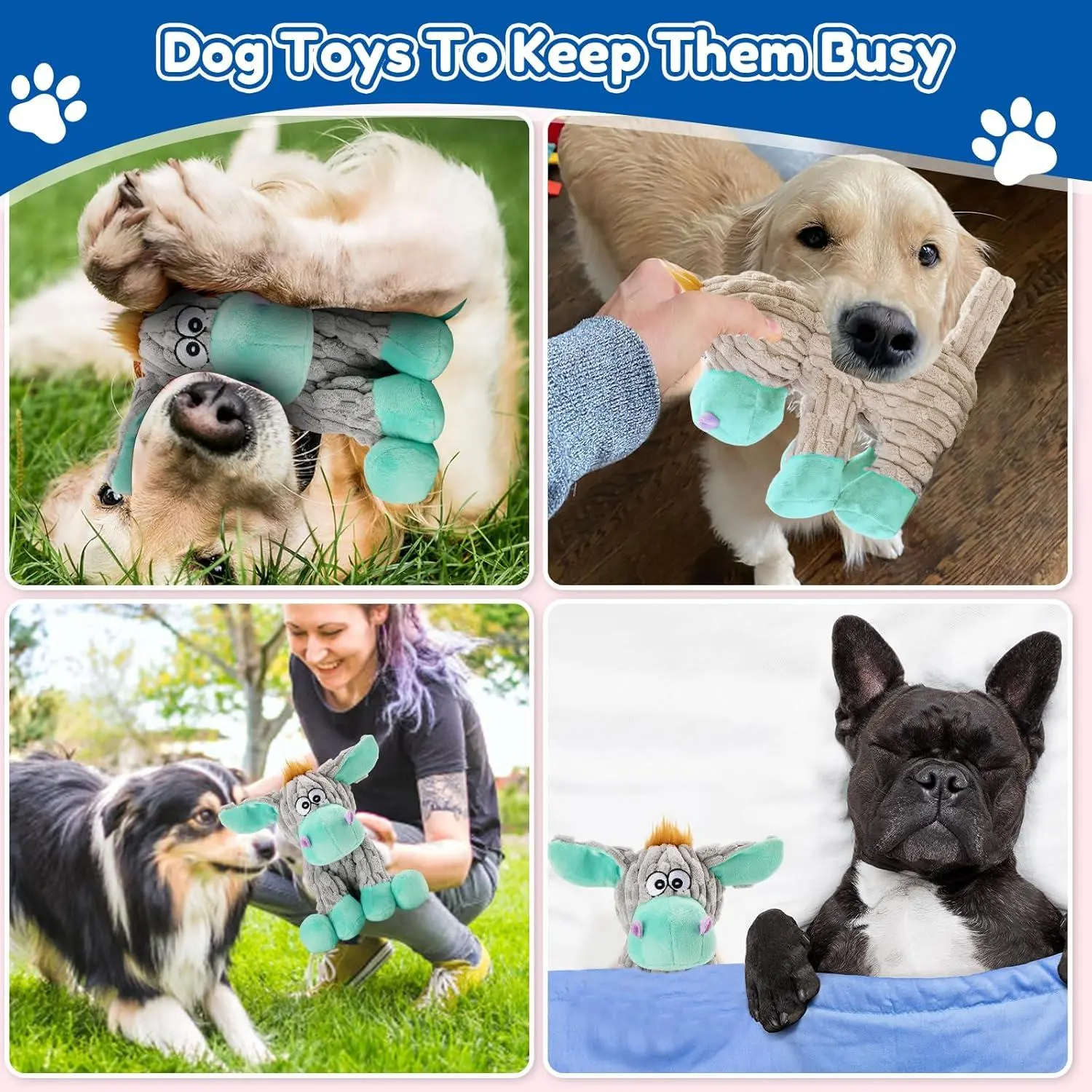 Dog Toys, Interactive Dog Squeaky Toys, Tough Crinkle Stuffed Animal Chew Toy for Small, Medium, Large Breeds, Plush Toy to Keep Them Busy, Pet Toys for Dogs