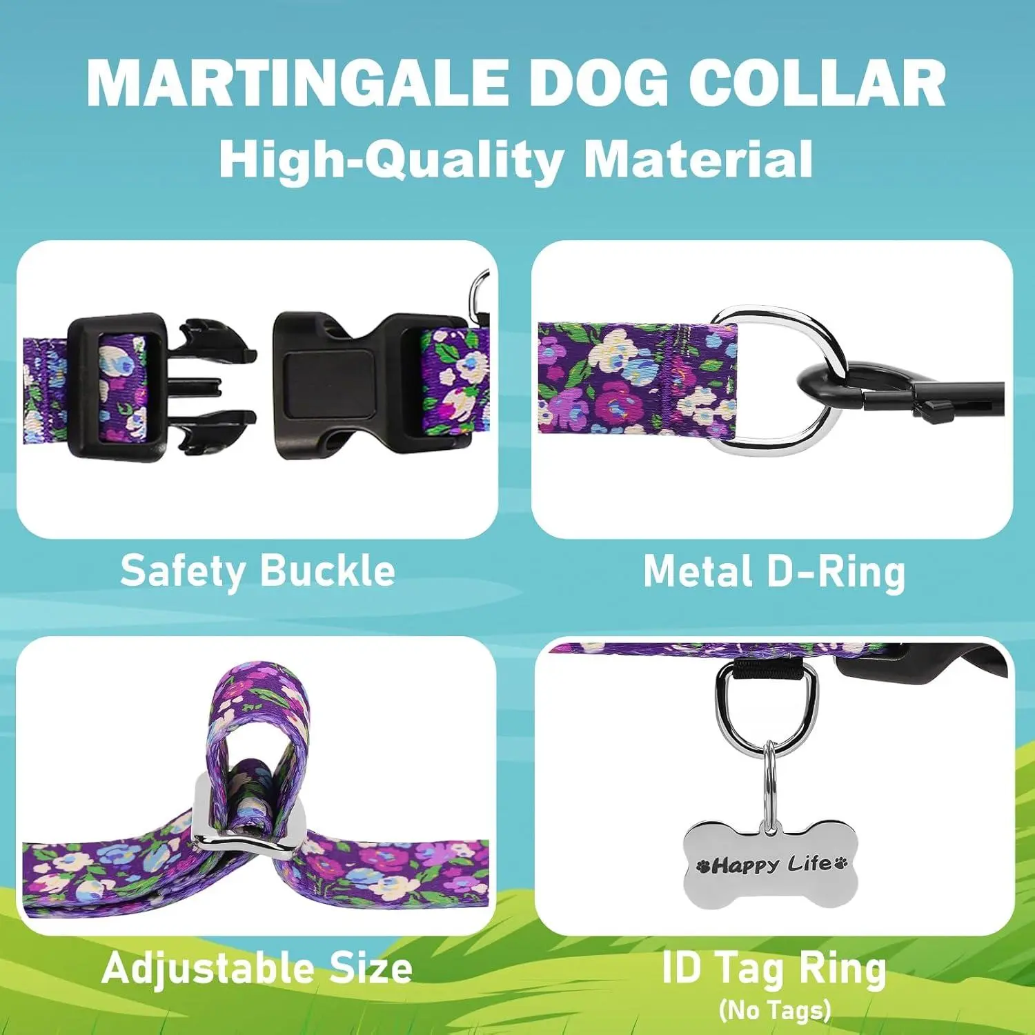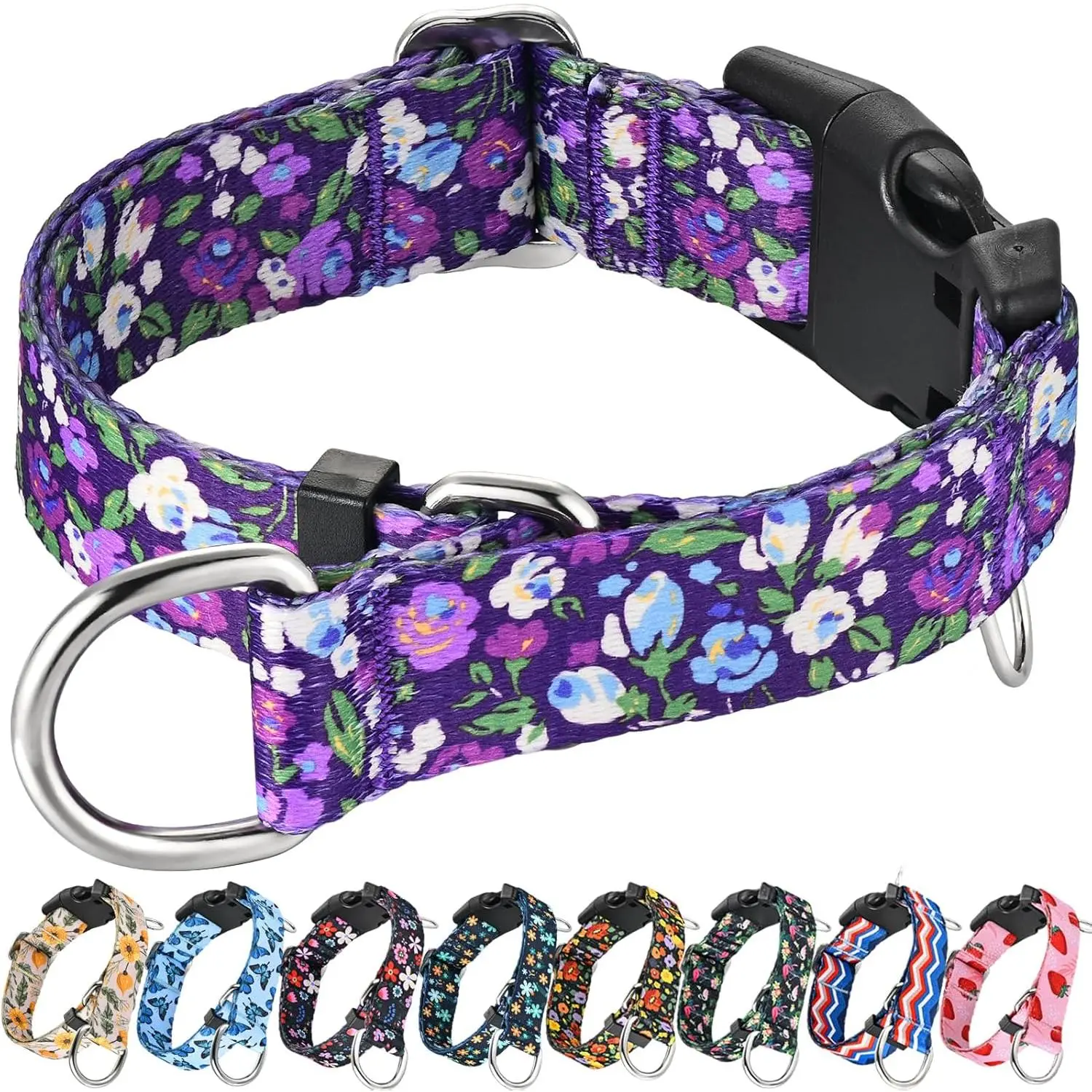 Martingale Collar for Dogs with Buckle Floral No Pull Training Dog Collars (Purple Floral, Medium)