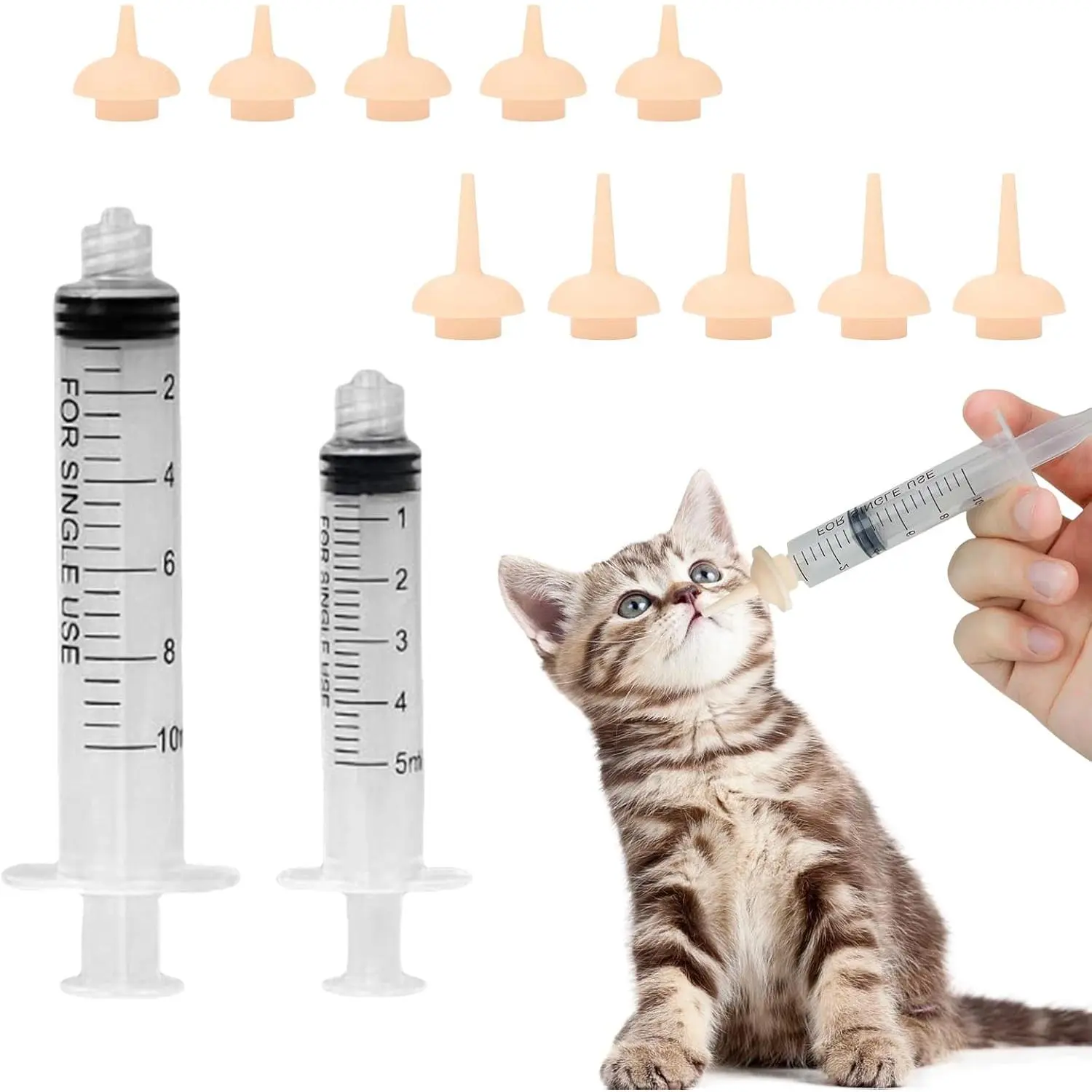 Pet Feeding Syringe with Nipple, Silicone Feeding Tools for Kitten Puppy Feeding Syringe for Newborn Cat Dog Small Animals Rabbits (5ml+10ml +10 nipples)