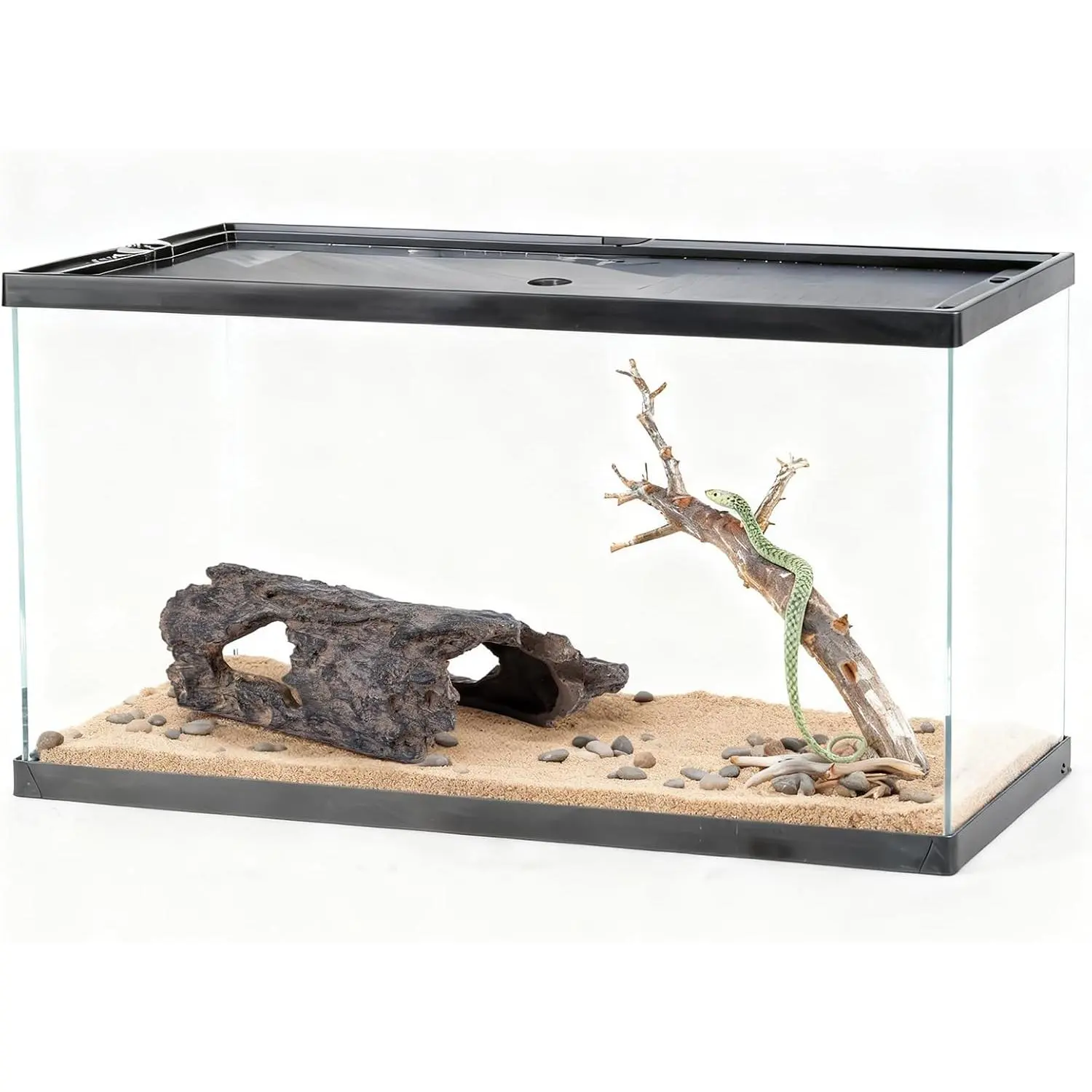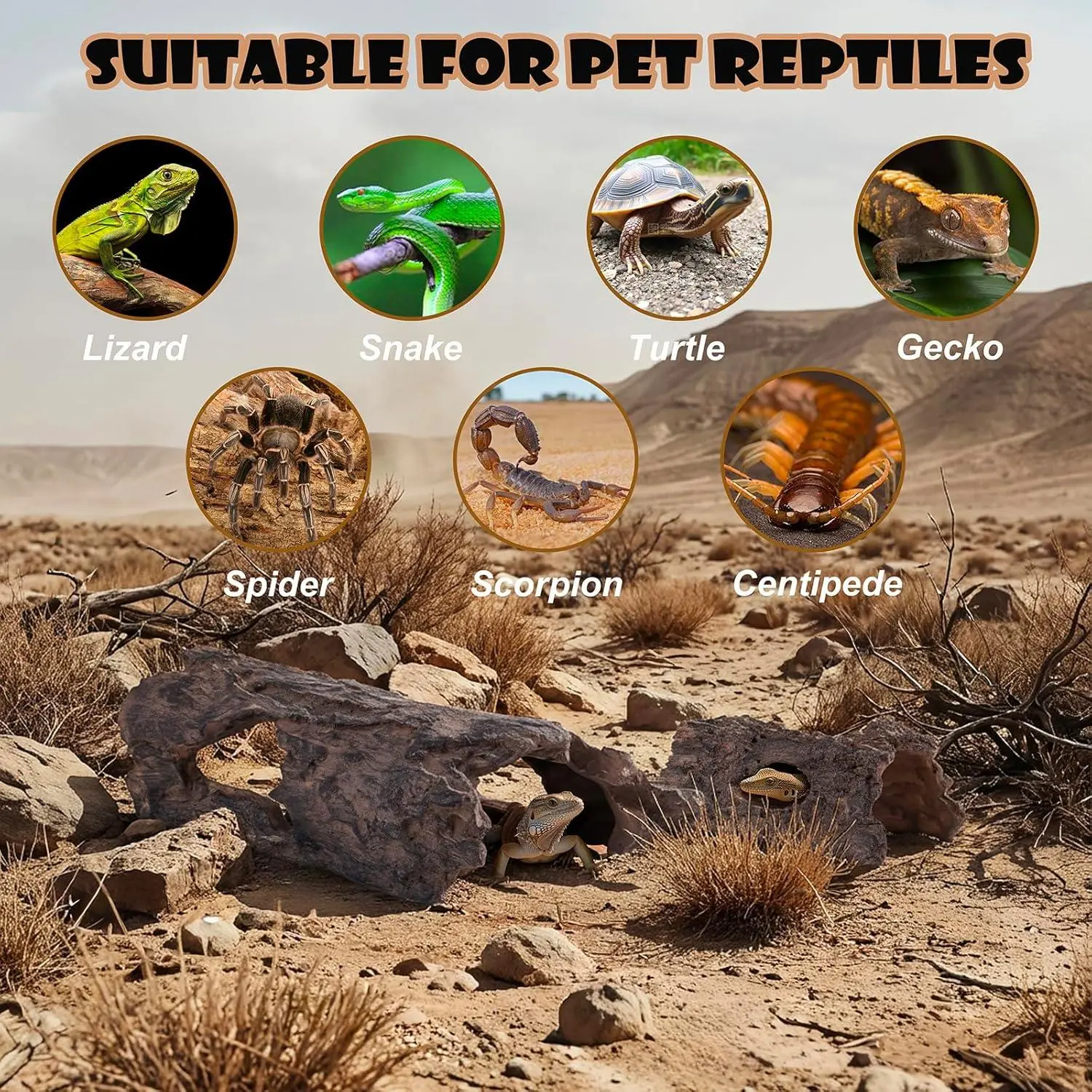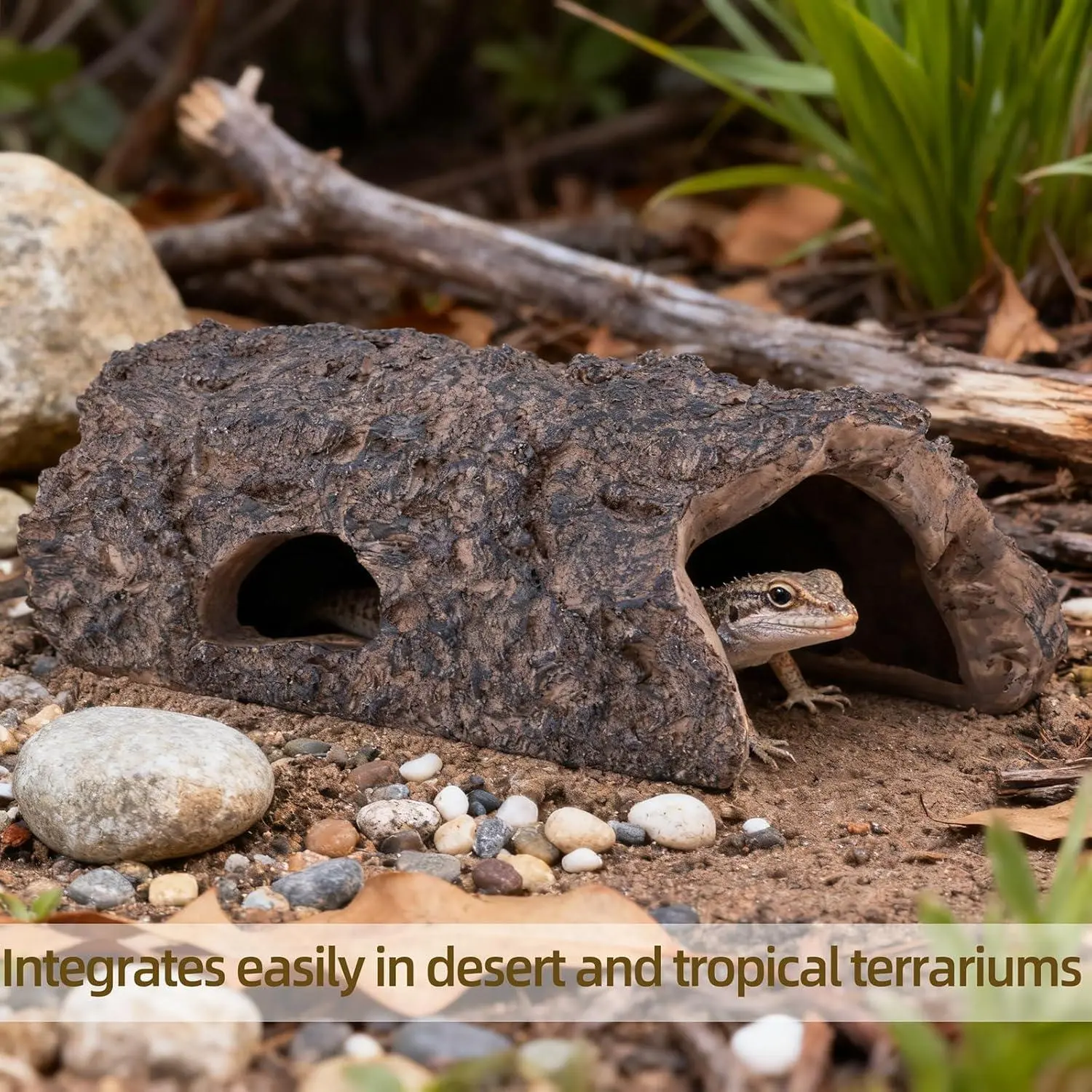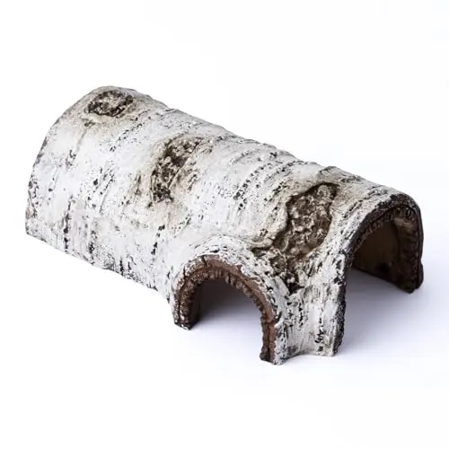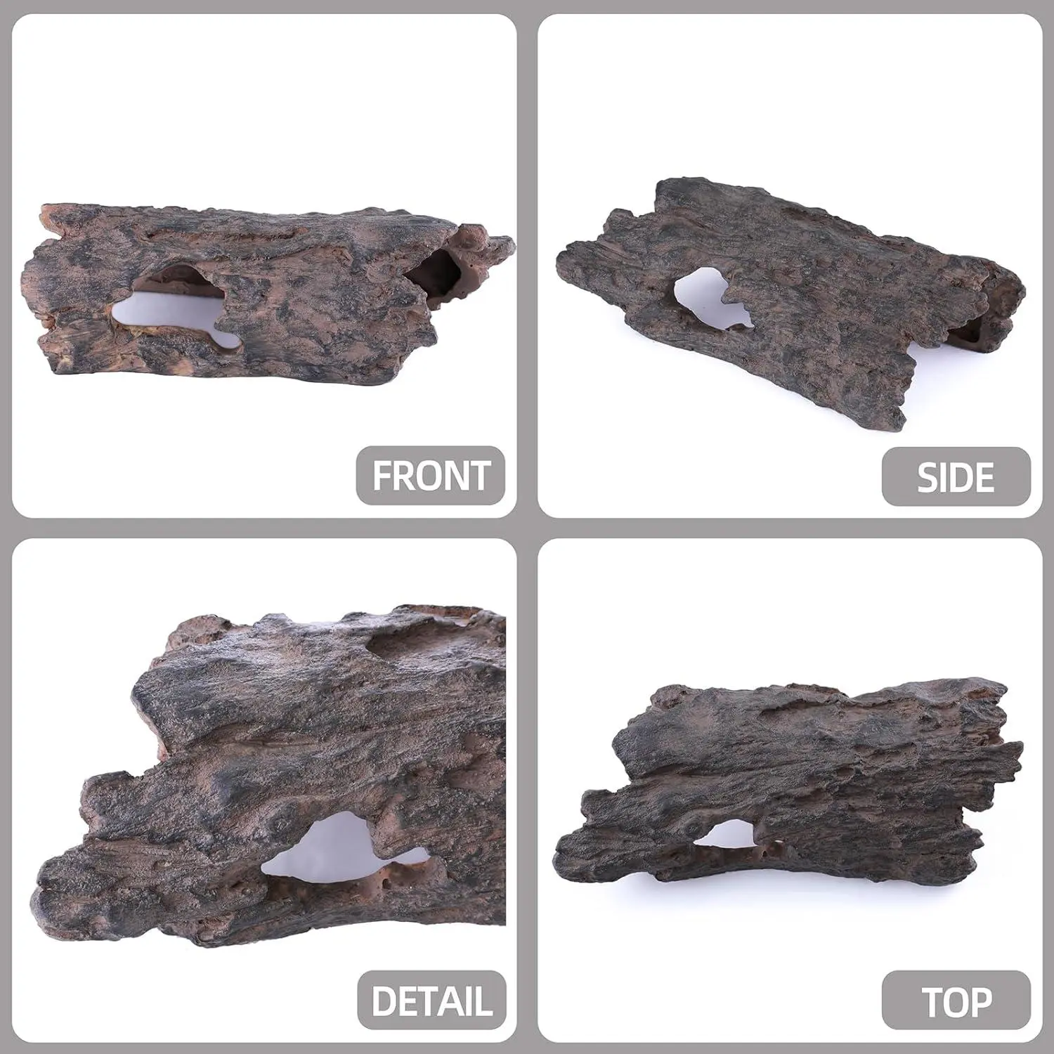 Natural Reptile Hide Basking Platform, Hideout Decor for Aquarium, Fish Tank, Bearded Dragon, Gecko, Shrimp, Betta (Faux Wood Tree Cave, Small)