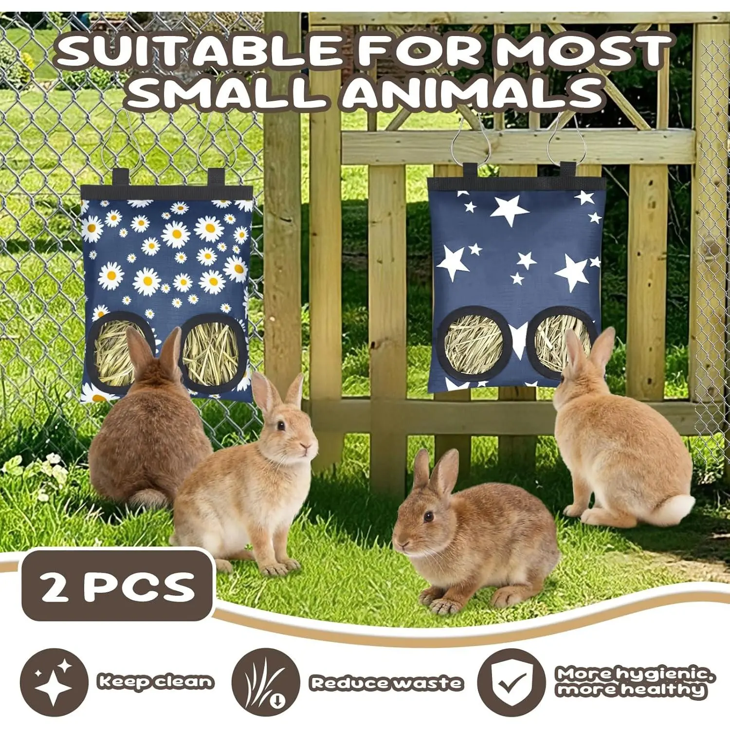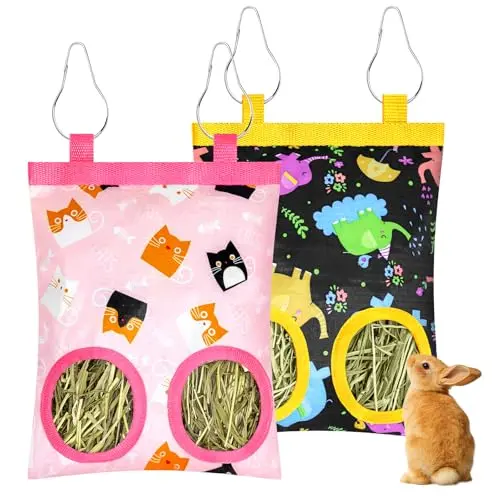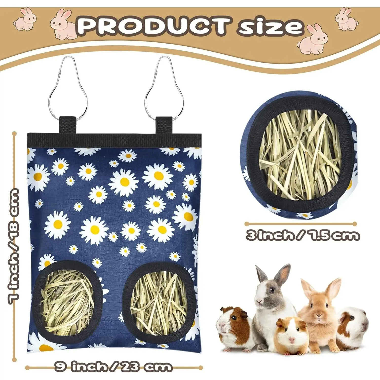 2 Pack Rabbits Hay Feeder Bag, 2 Holes Hanging Bunny Hay Feeder Guinea Pig Feeding Bag Storage Dispenser for Bunny Rabbits Chinchillas Hamsters Small Pets and Animals