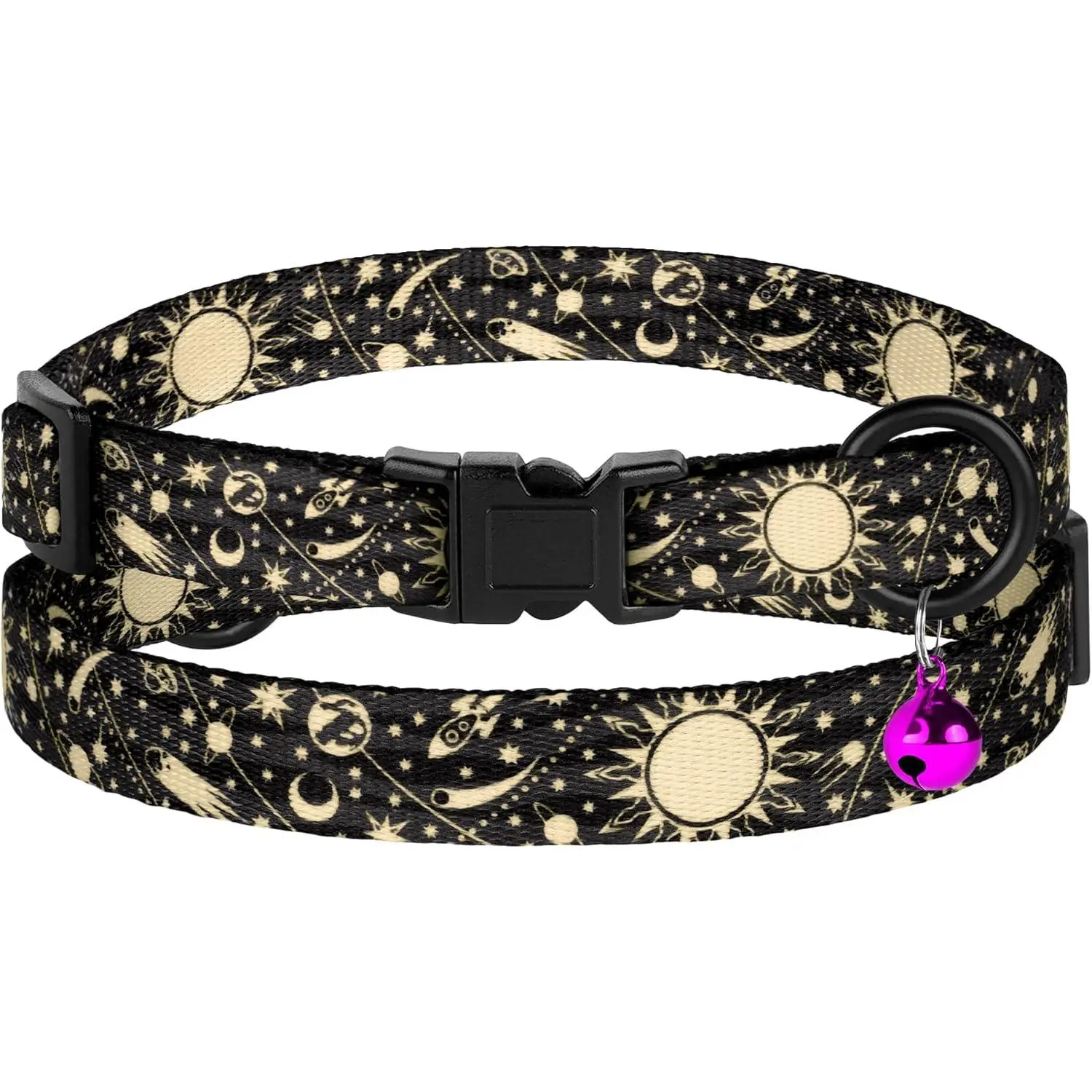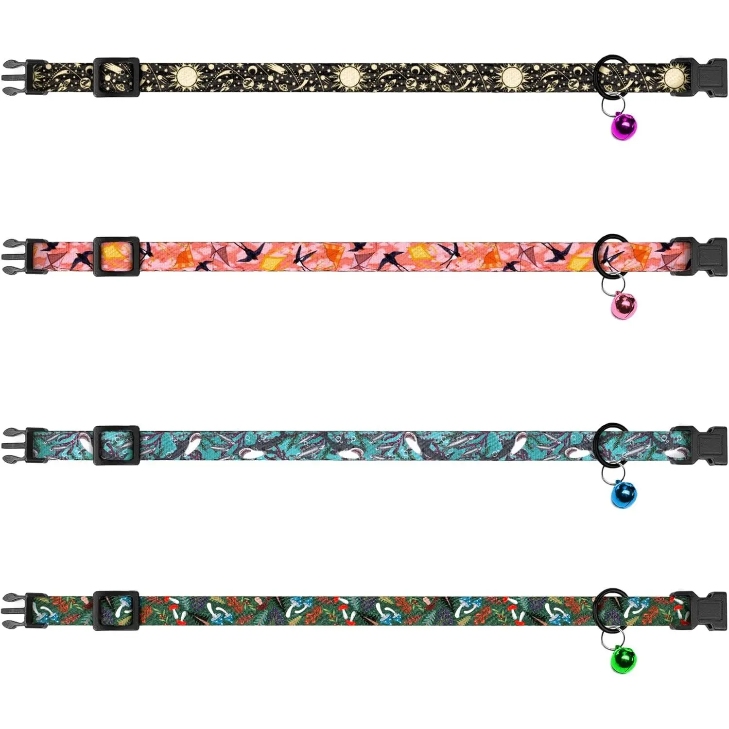4PCS Breakaway Cat Collars with Bell - Cute Soft Adjustable Safety Kitten Collars 4-Pack - Nylon Pet Collars Nature Tribal Striped Floral Space Aztec Flowers Print (Nature)