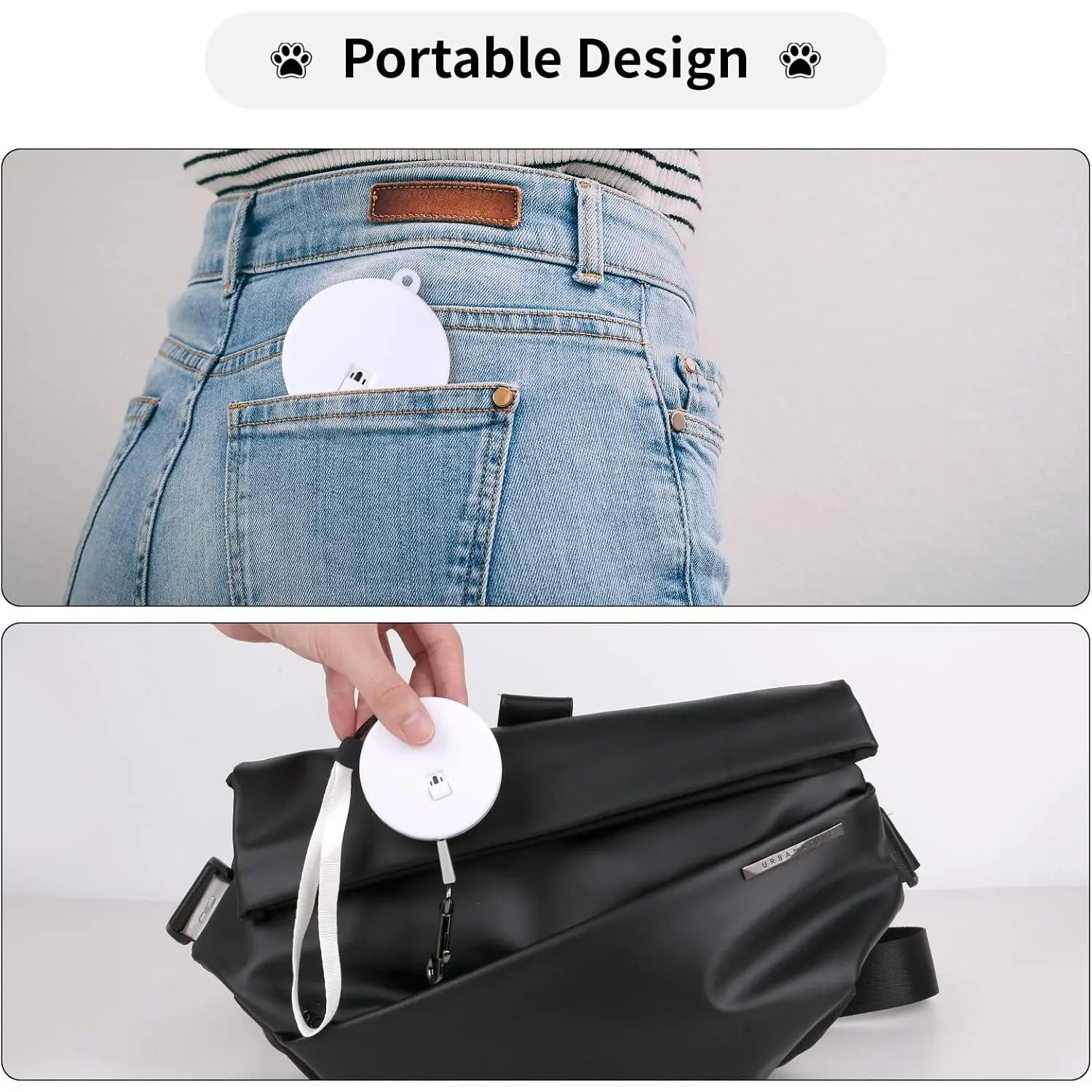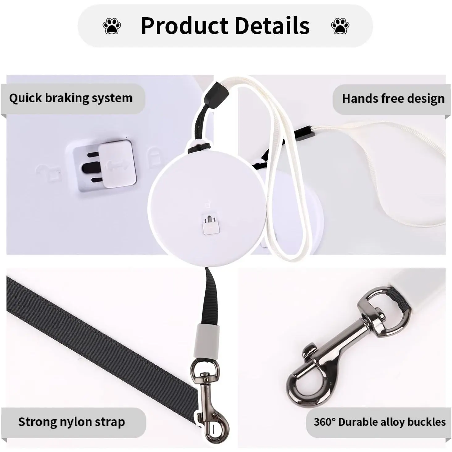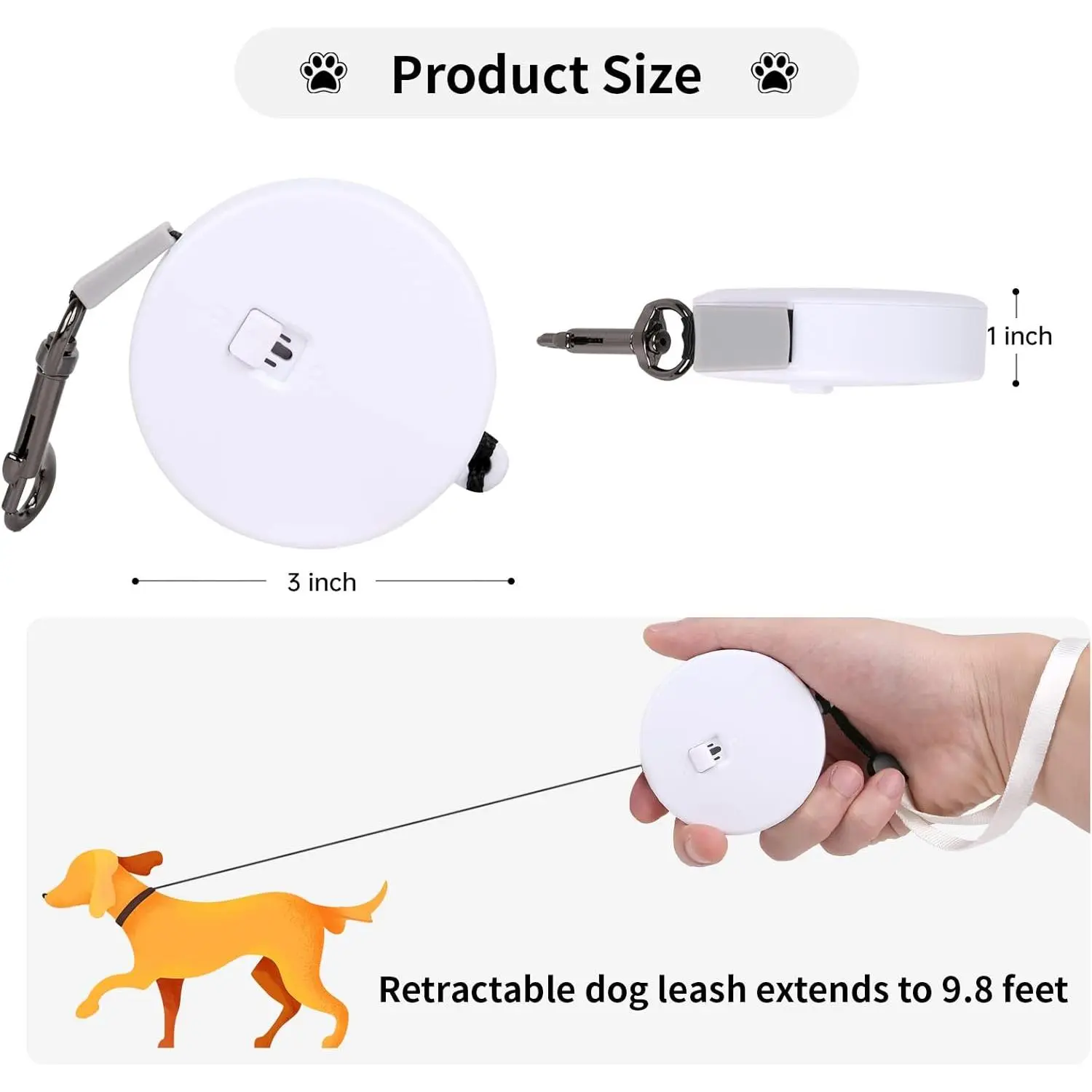 Retractable Dog Leash for Small and Medium Dogs up to 22lbs with 9.8ft Strong Nylon Tape, Hands Free, Portable and Lightweight Leash with Wrist Strap, One-Hand Brake, Tangle Free (White)