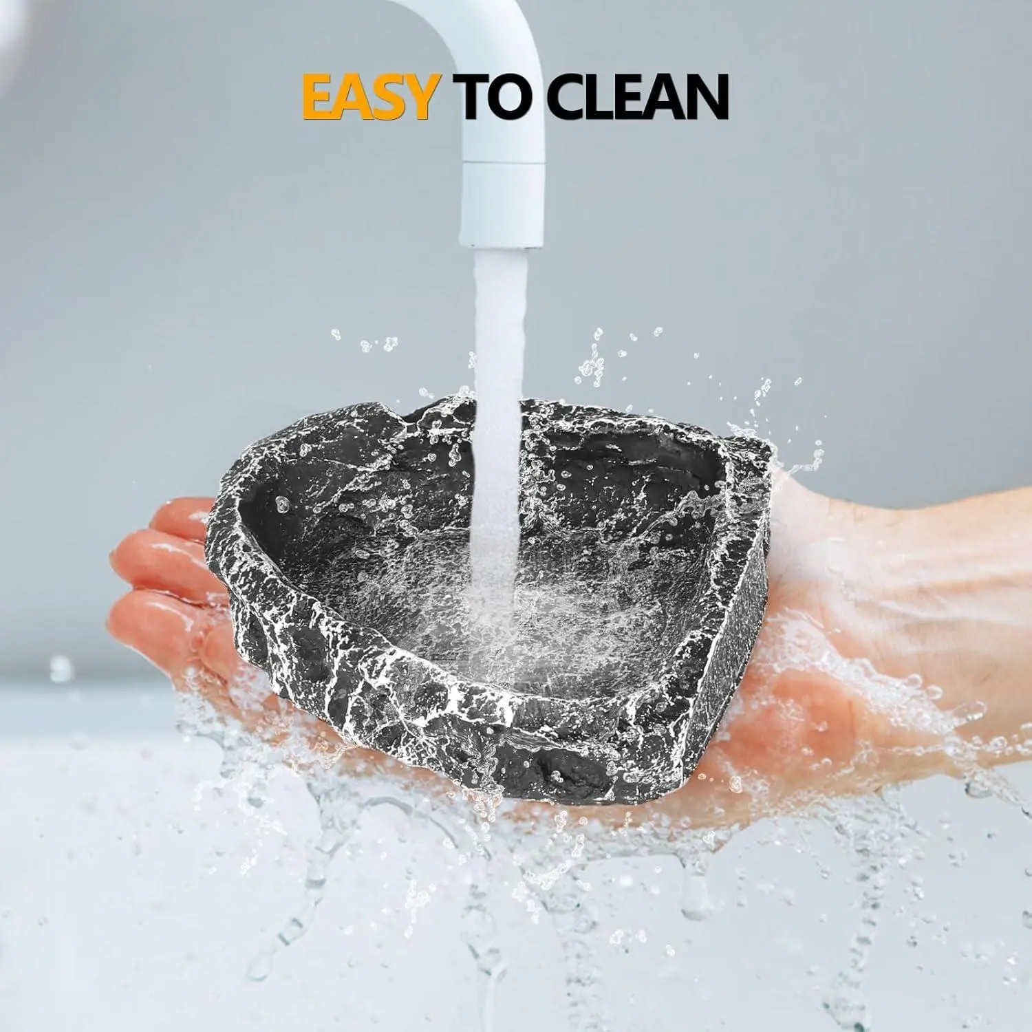 Reptile Water Dish Food Bowl for Bearded Dragon Tank Accessories, Reptile Rock Feeder for Tank 2 Pack Corner Resin Terrarium Bowl for Leopard Gecko Hermit Crab Tortoise Snake, Black