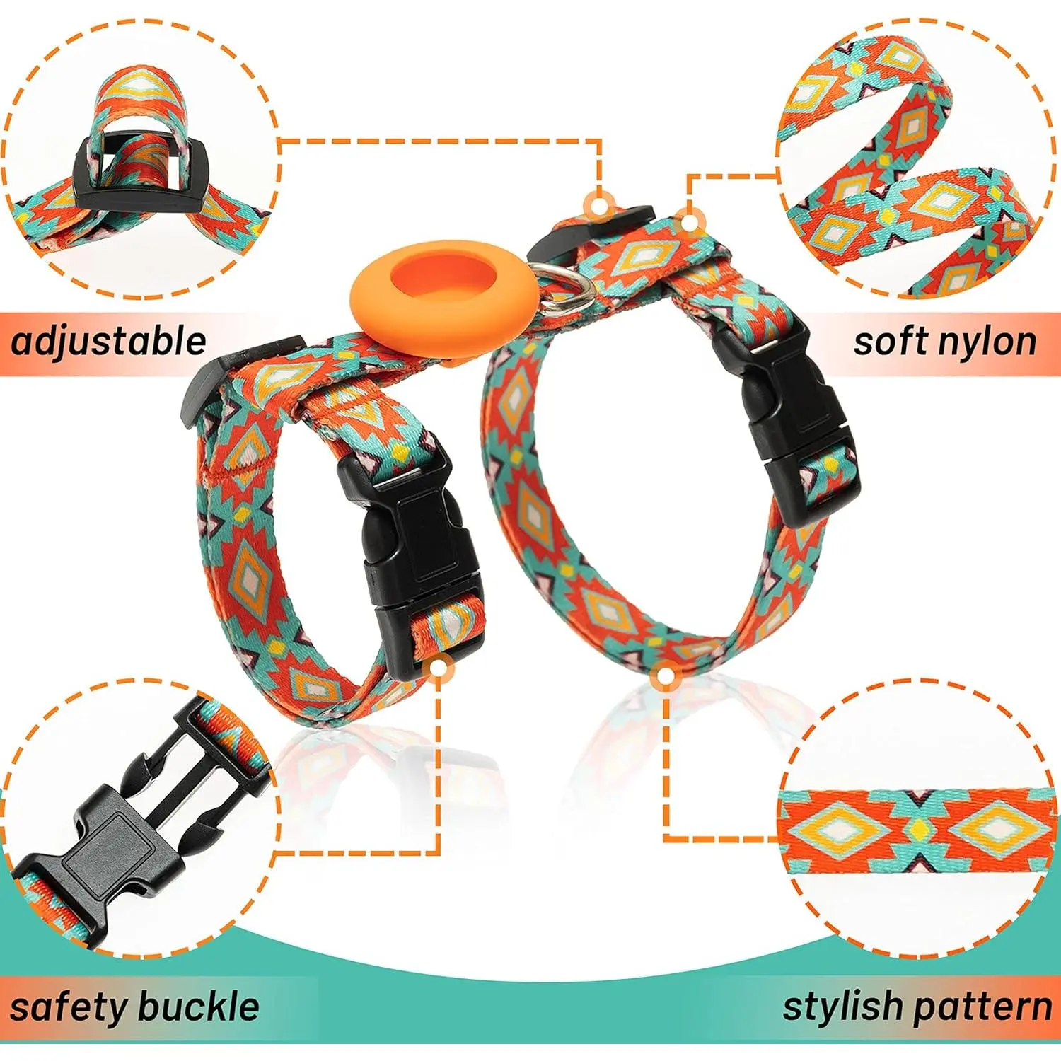 Cat Harness and Leash Escape Proof for Walking Travel Outdoor - Soft Nylon Adjustable Cute Cat Harness Leash Set with Airtag Holder for Small Large Cats