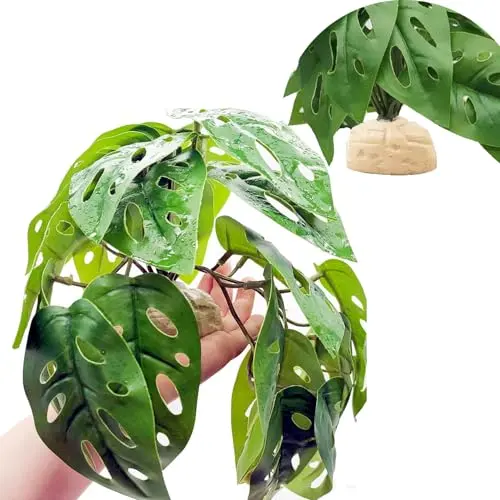 Reptile Plants for Terrarium Decor,Amphibian Habitat Decor,Artificial Plants for Gecko Chameleon Snake Tortoise Tank Accessories with Base (Monstera deliciosa)
