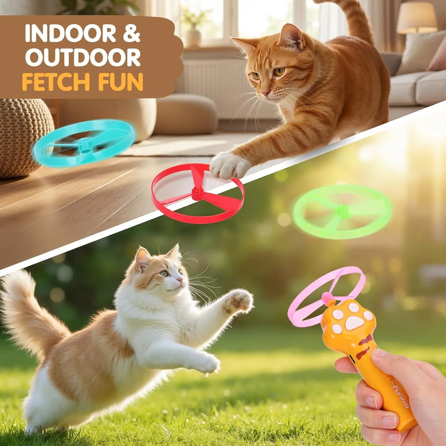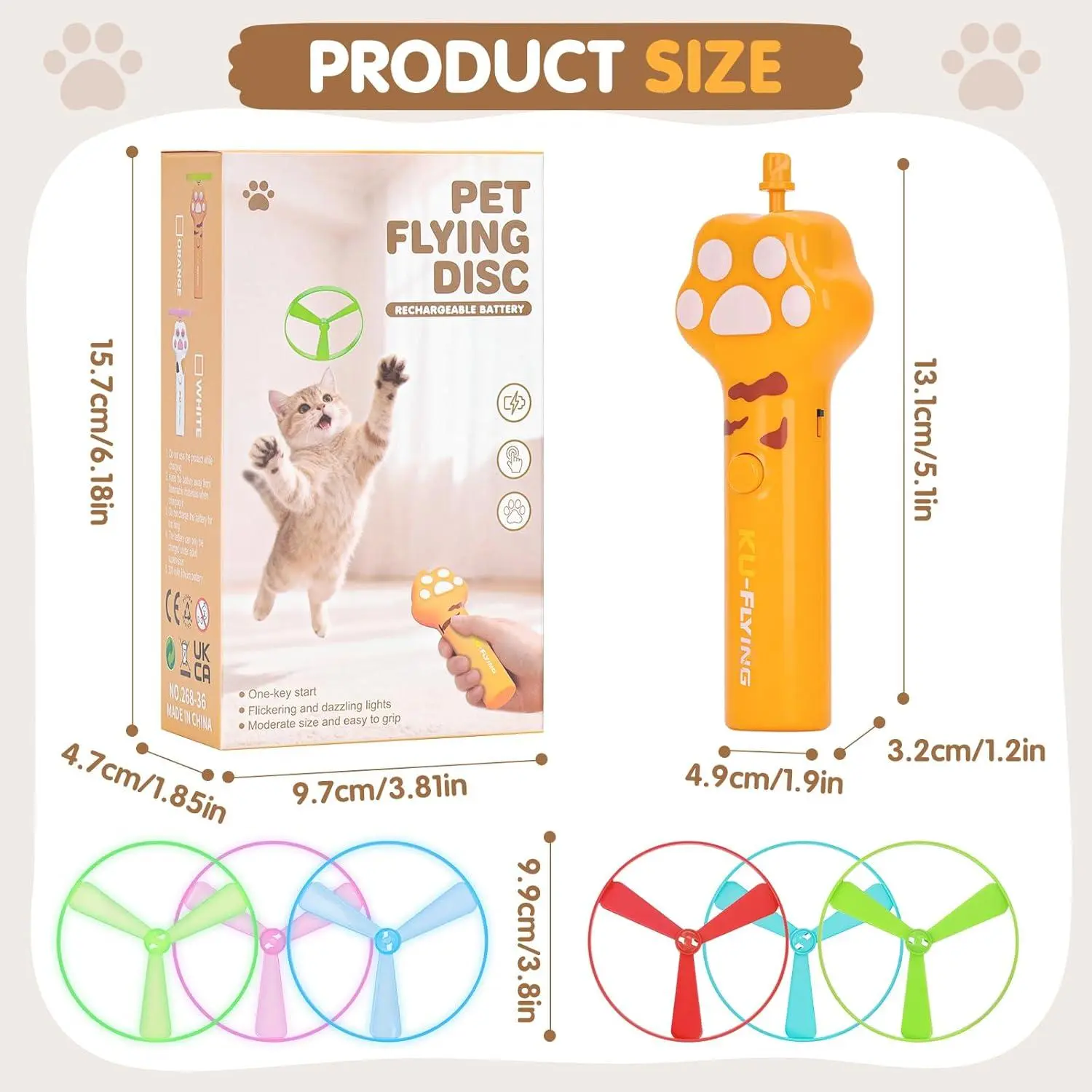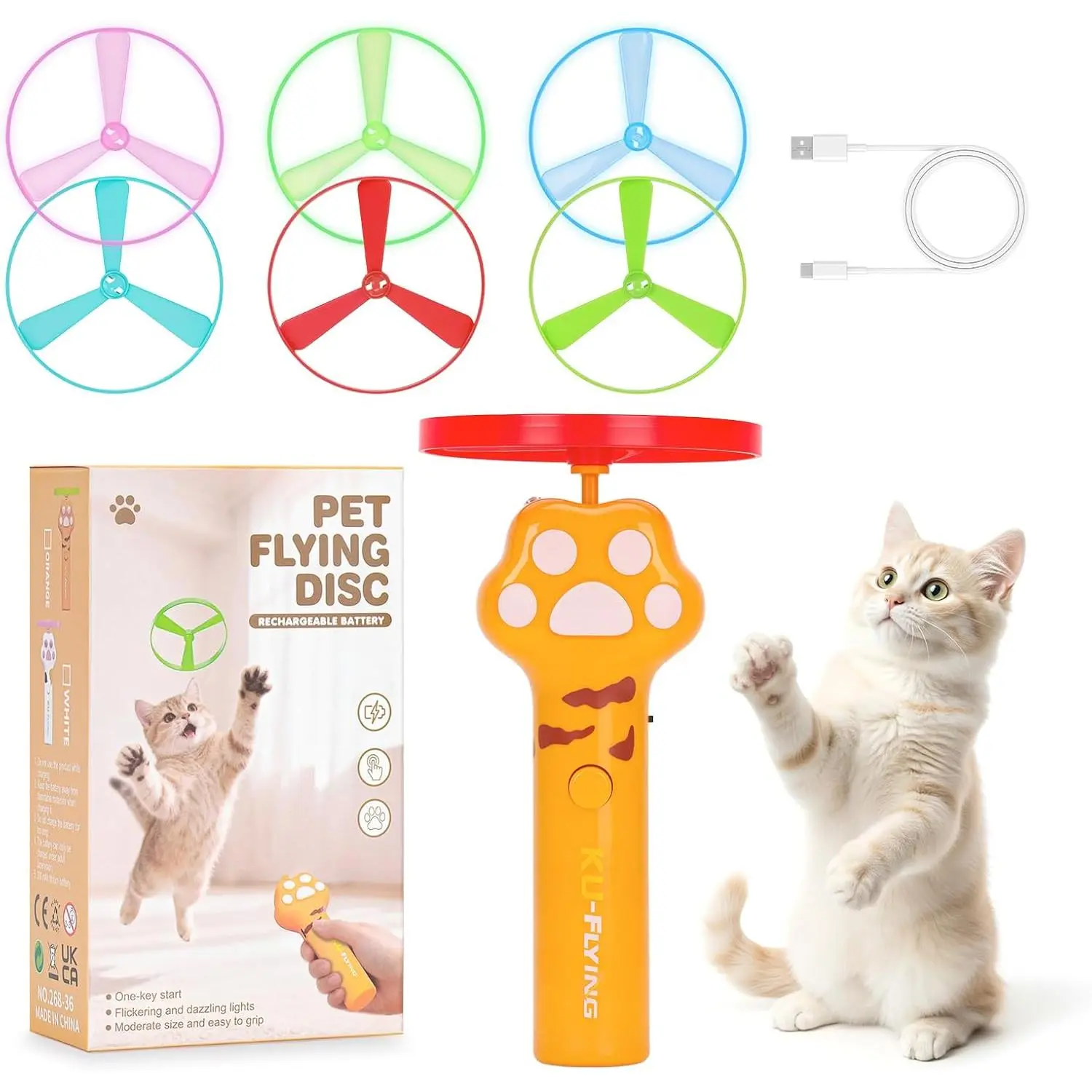 Cat Fetch Toy, Rechargeable Flying Disc Launcher with 6 Flying Discs, Cat Interactive Hunting Toys for Outdoor & Indoor (Yellow)