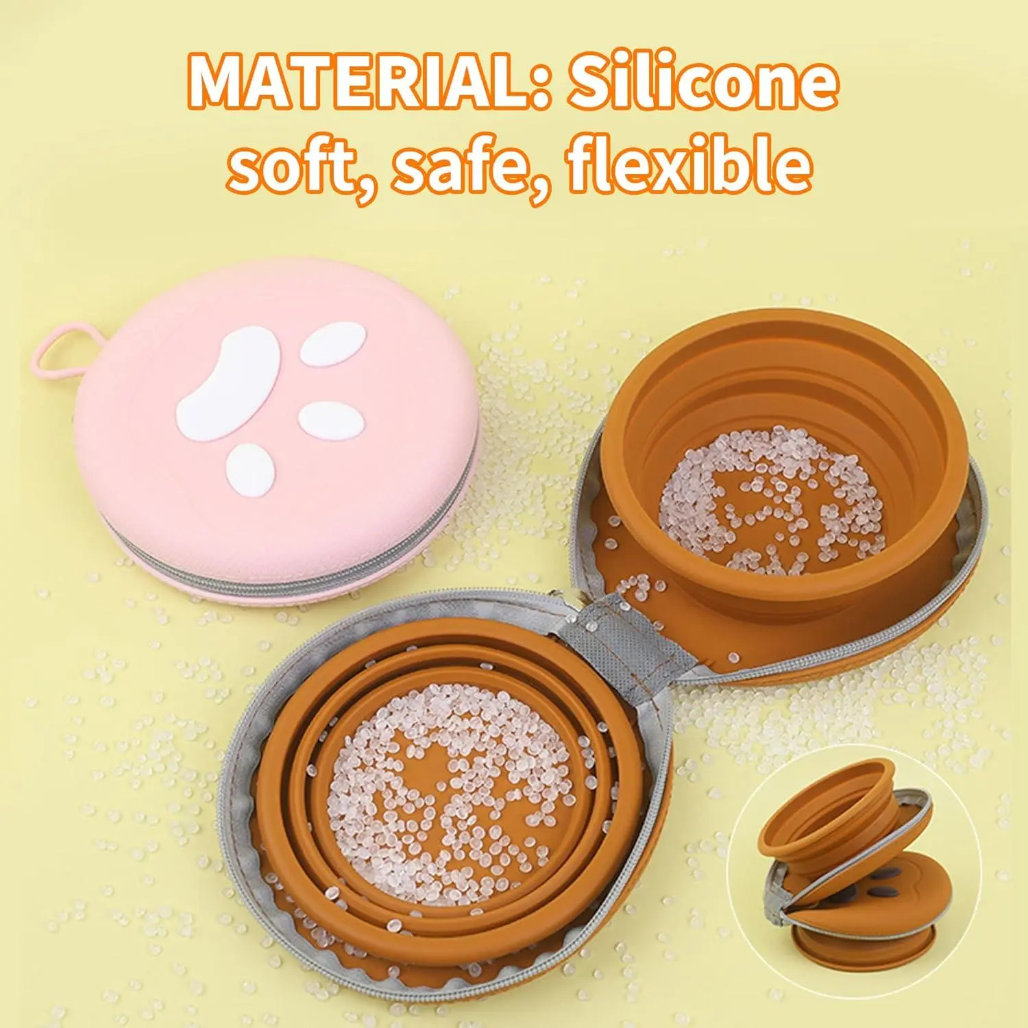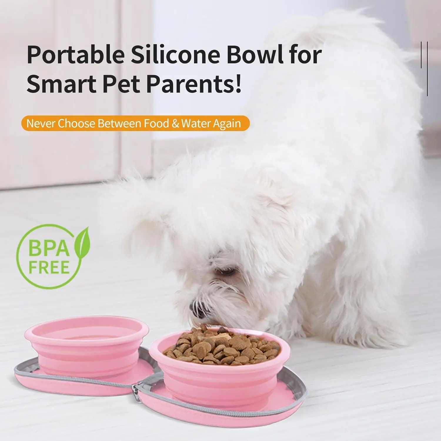 Collapsible Dog Bowls, 2-in-1 Pet Portable Travel Double Bowl Water Food Feeder Traveling Camping & Walking 25oz Pink