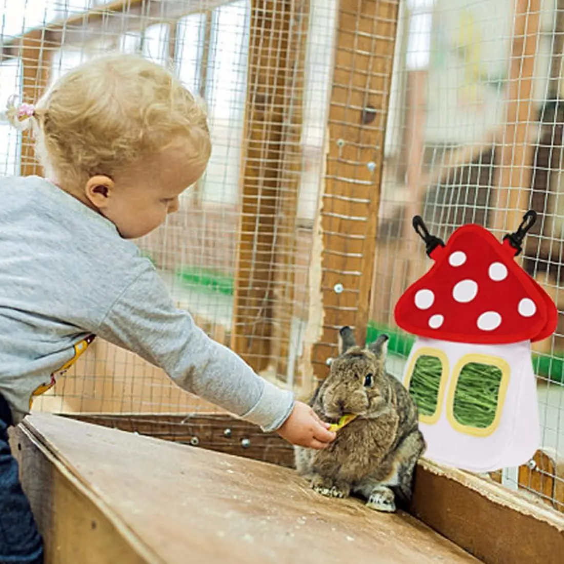 Bunny Hay Feeder, Hanging Rabbit Hay Feeder Bag for Bunnies Guinea Pigs Chinchillas Hamster