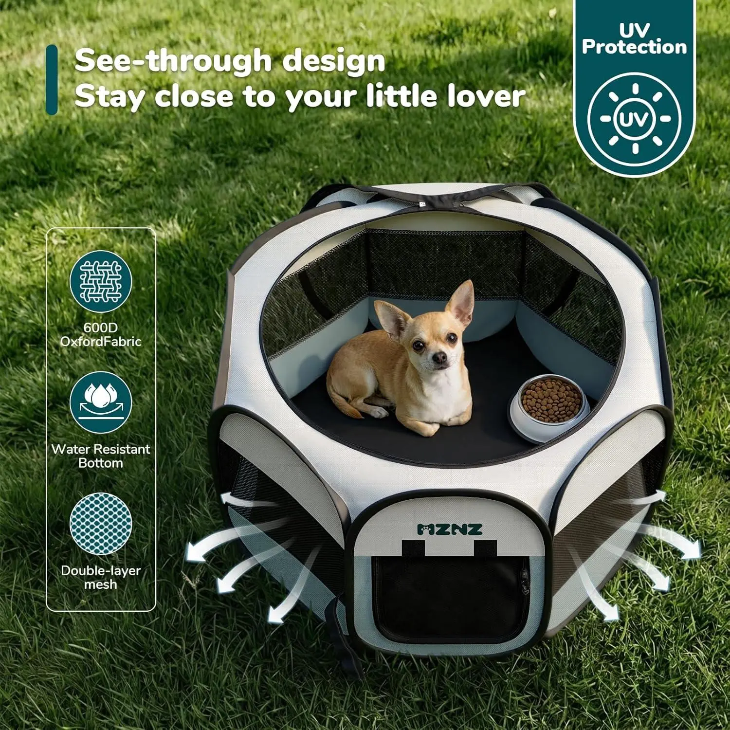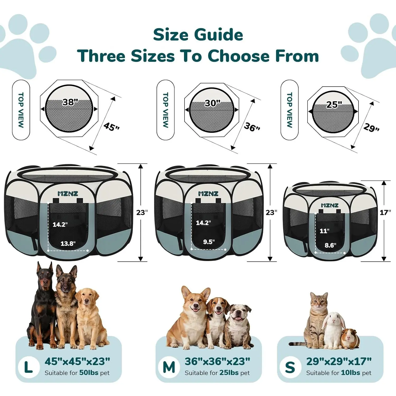 Dog Cat Playpen, Portable Puppy Pet Crate Indoor for Small Dogs Cats Rabbits, Foldable Dog Cage Enclosure for Outdoor, Pop Up Dogs Tent Kennel with Carrying Case, Grey