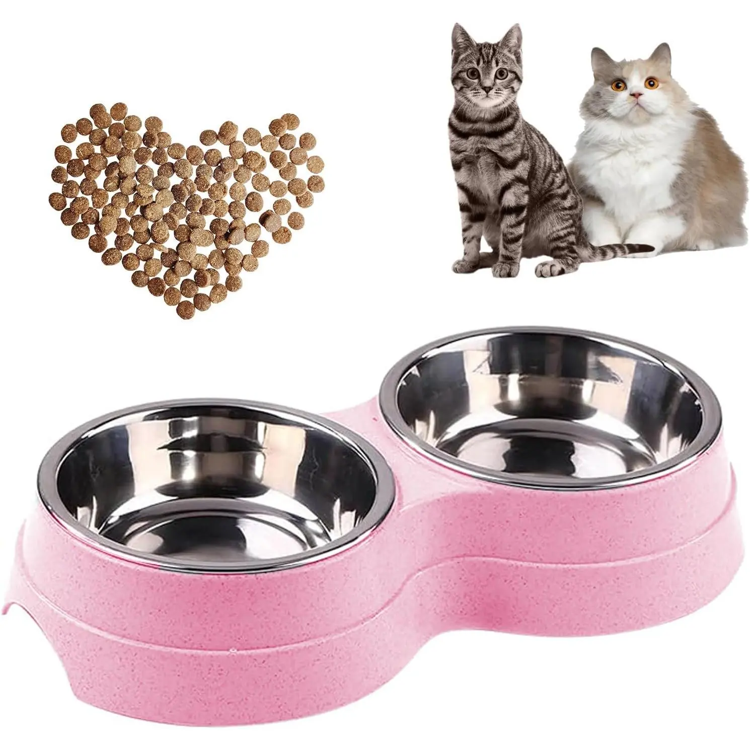 Double Cat Food Bowl -Stainless Steel Bowls with Easy-to-Clean Detachable Design, Non-Slip Base, Pet Feeder for Kittens and Medium Cats (Pink)