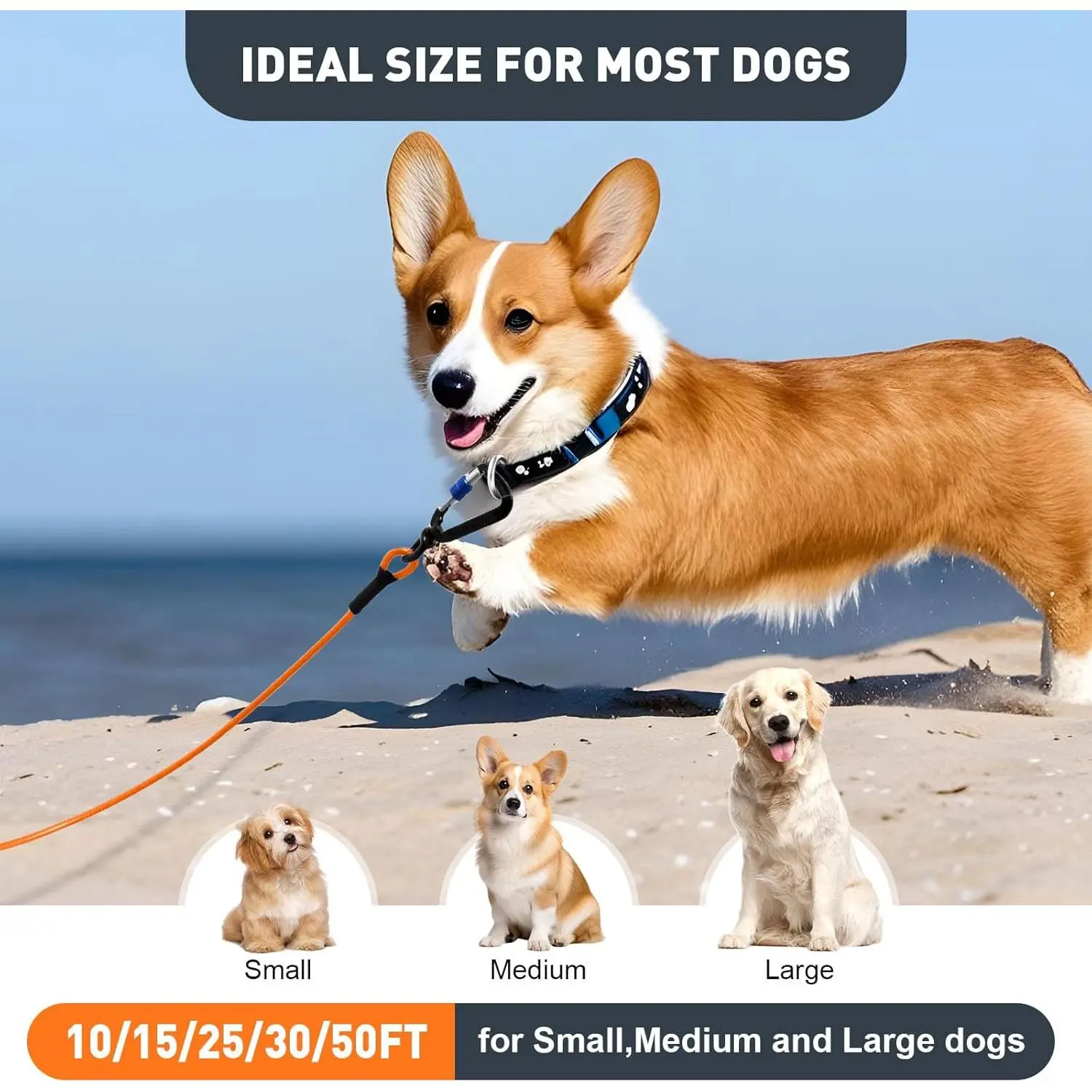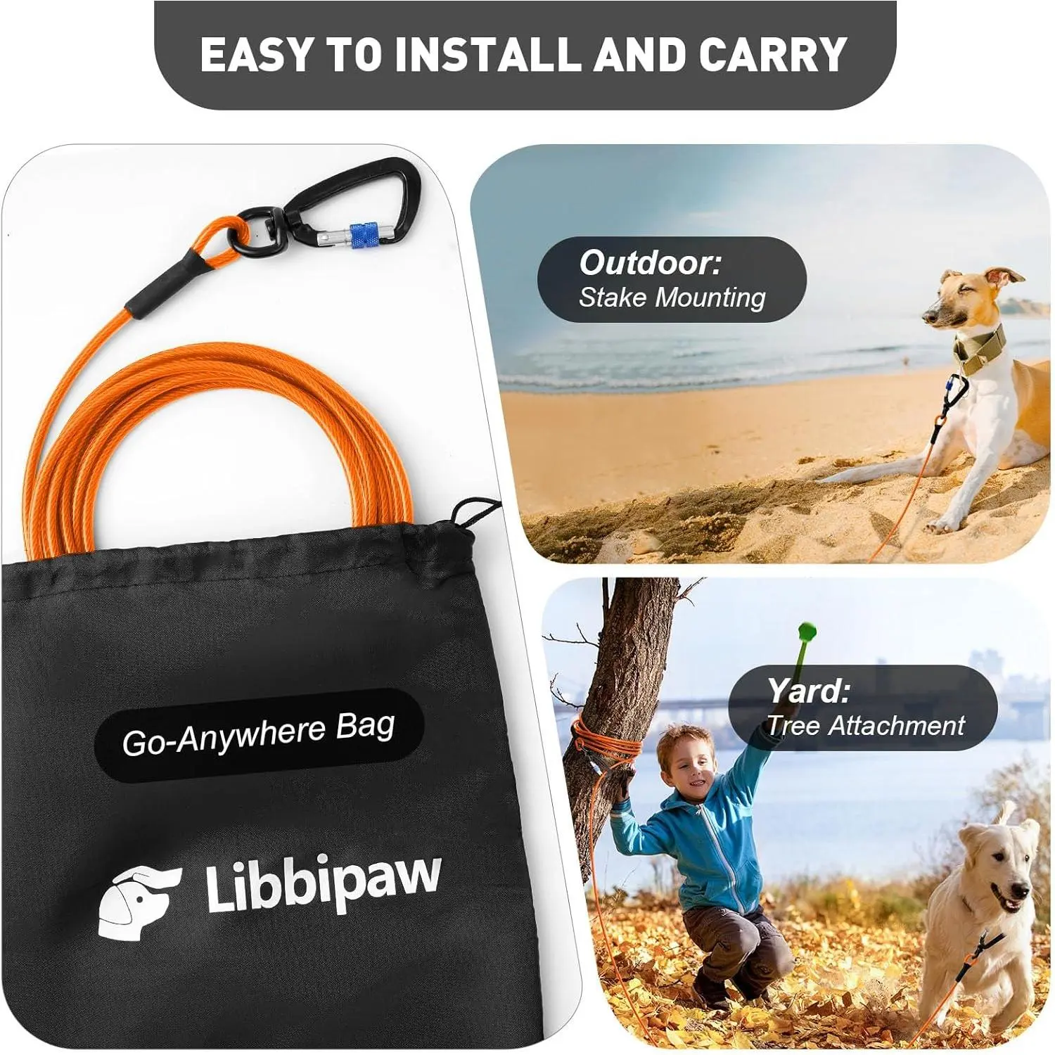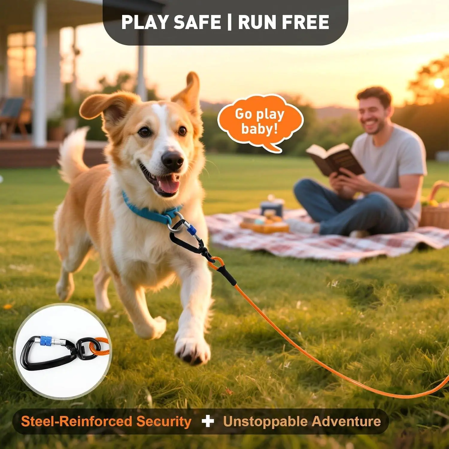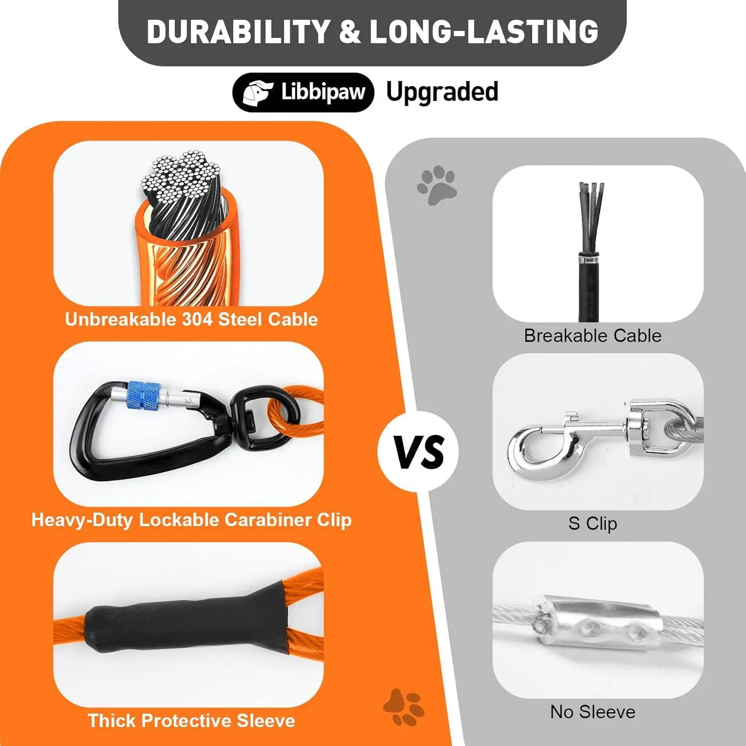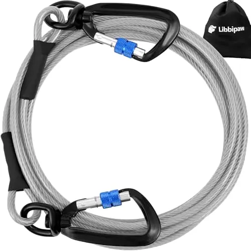 Dog Tie Out Cable 10FT Heavy Duty Chew Proof, Tangle-Free Runner with 360° Swivels & Locking Clip for Large Dogs Up to 250LBS - Rust Proof Leash for Yard, Camping, Outside (Orange 10FT)