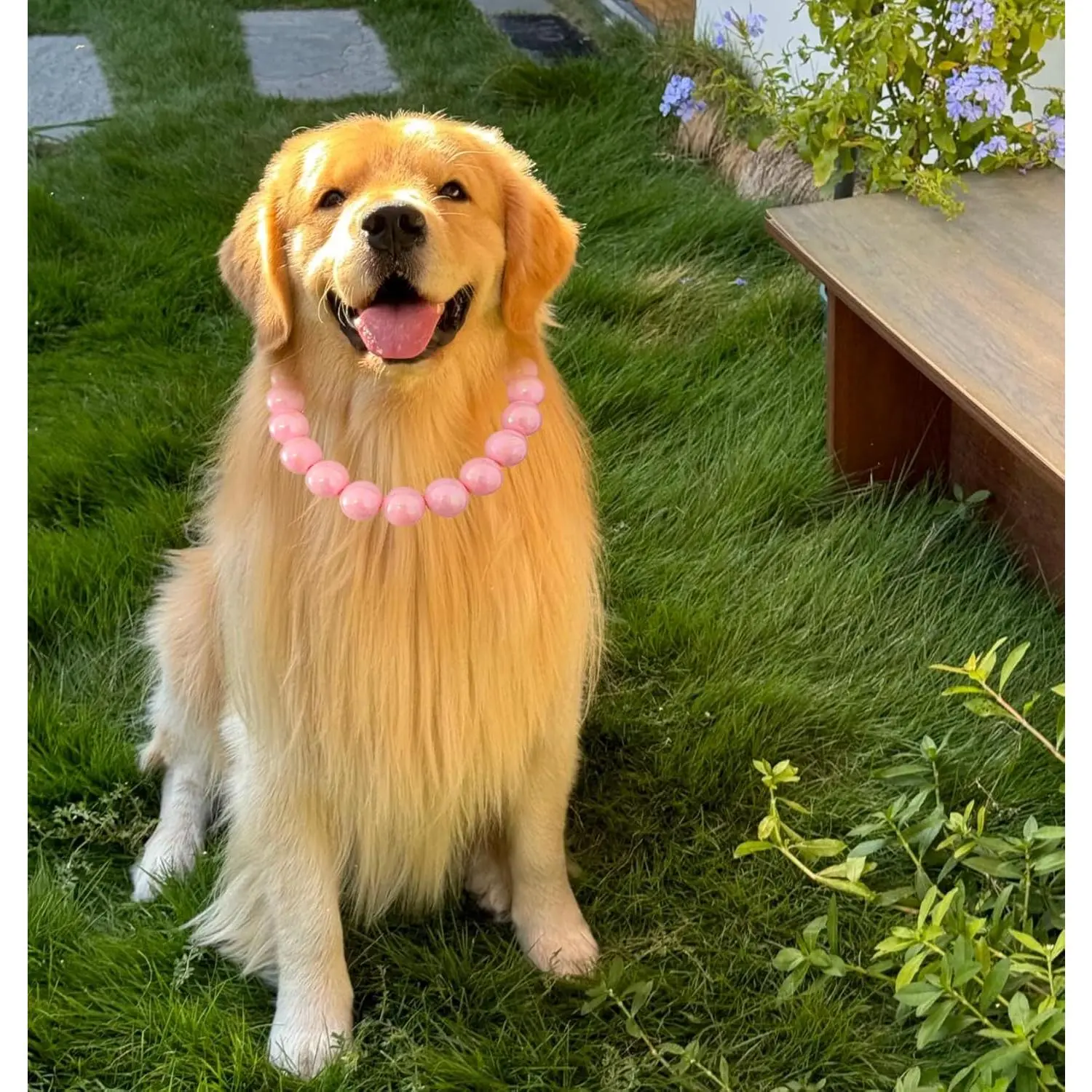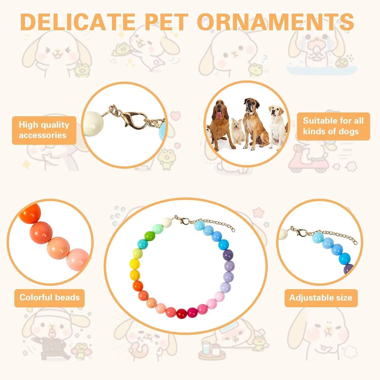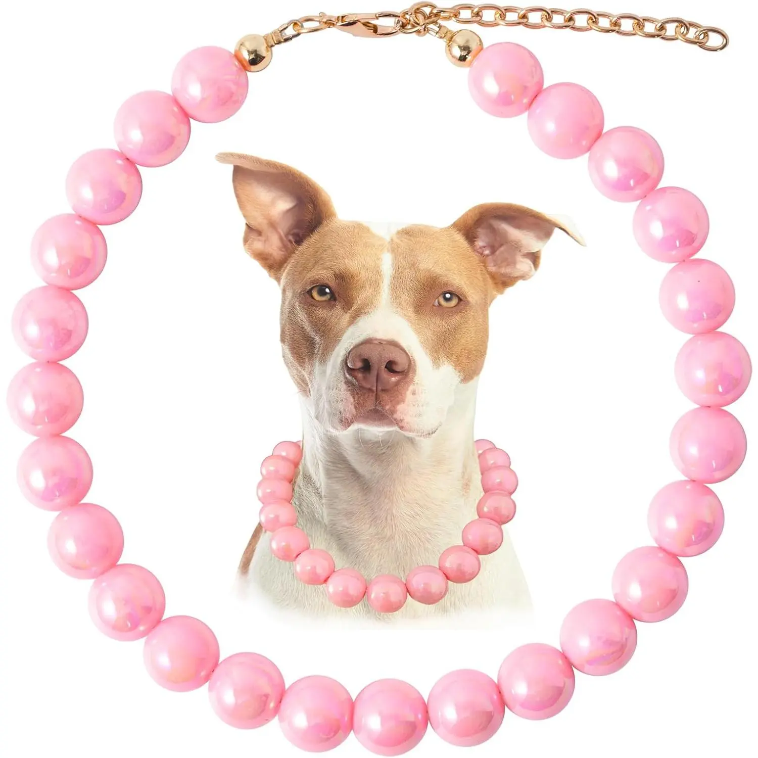 Pearl Collar Beaded Dog Collar Necklace Coloful Beads Adjustable Rhinestone Jewelry Pet Pearl Collar for Small, Medium/Large Dogs(Large,Cream Pink