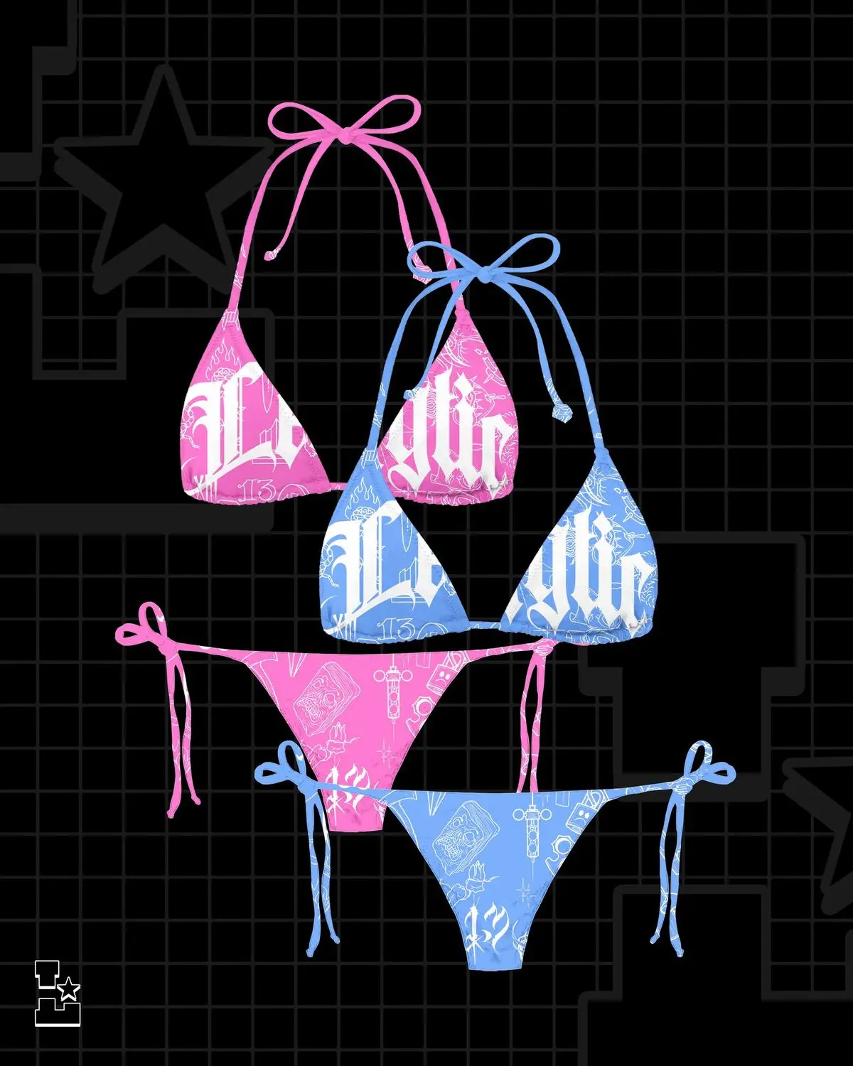 COMBO 2 SET - Exclusive Graphic Print Bikini Set - Trendy Y2K Aesthetic 2-Piece Swimsuit - Streetwear Style Triangle Bathing Suit for Summer Rave & Beach Parties