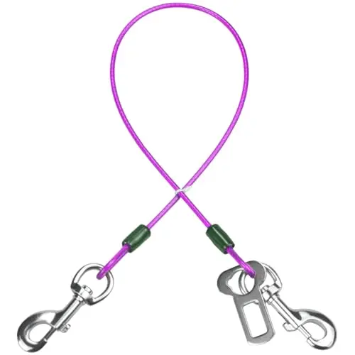 Dog Seat Belt Harness for Car,2pcs Dog Seatbelt of Coated Wire Leash Safety Restraint,No Chew Tether Cable Vehicle Dogs Accessories,Double Clips & Latch (2 Pack Black, 32 inch/80 CM)