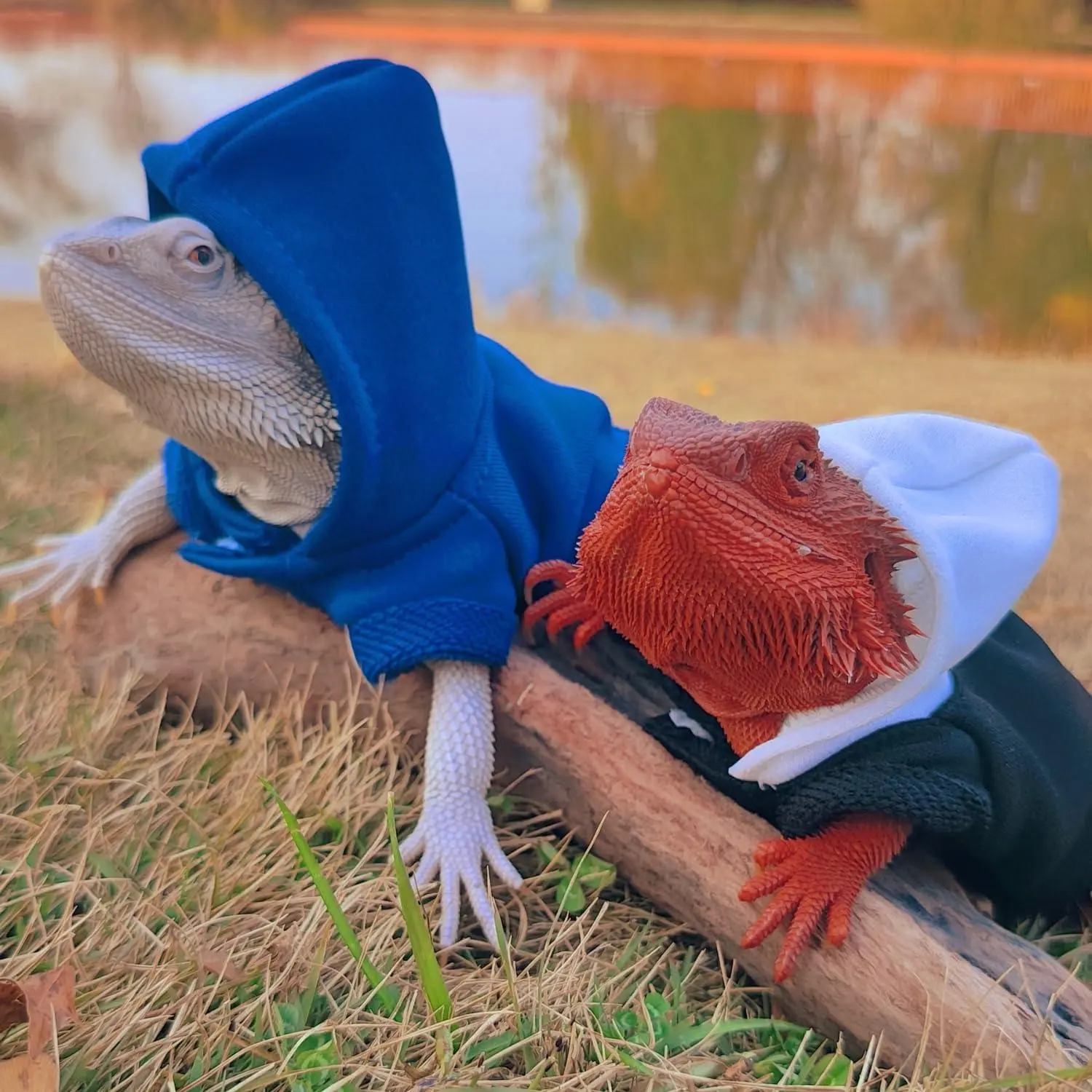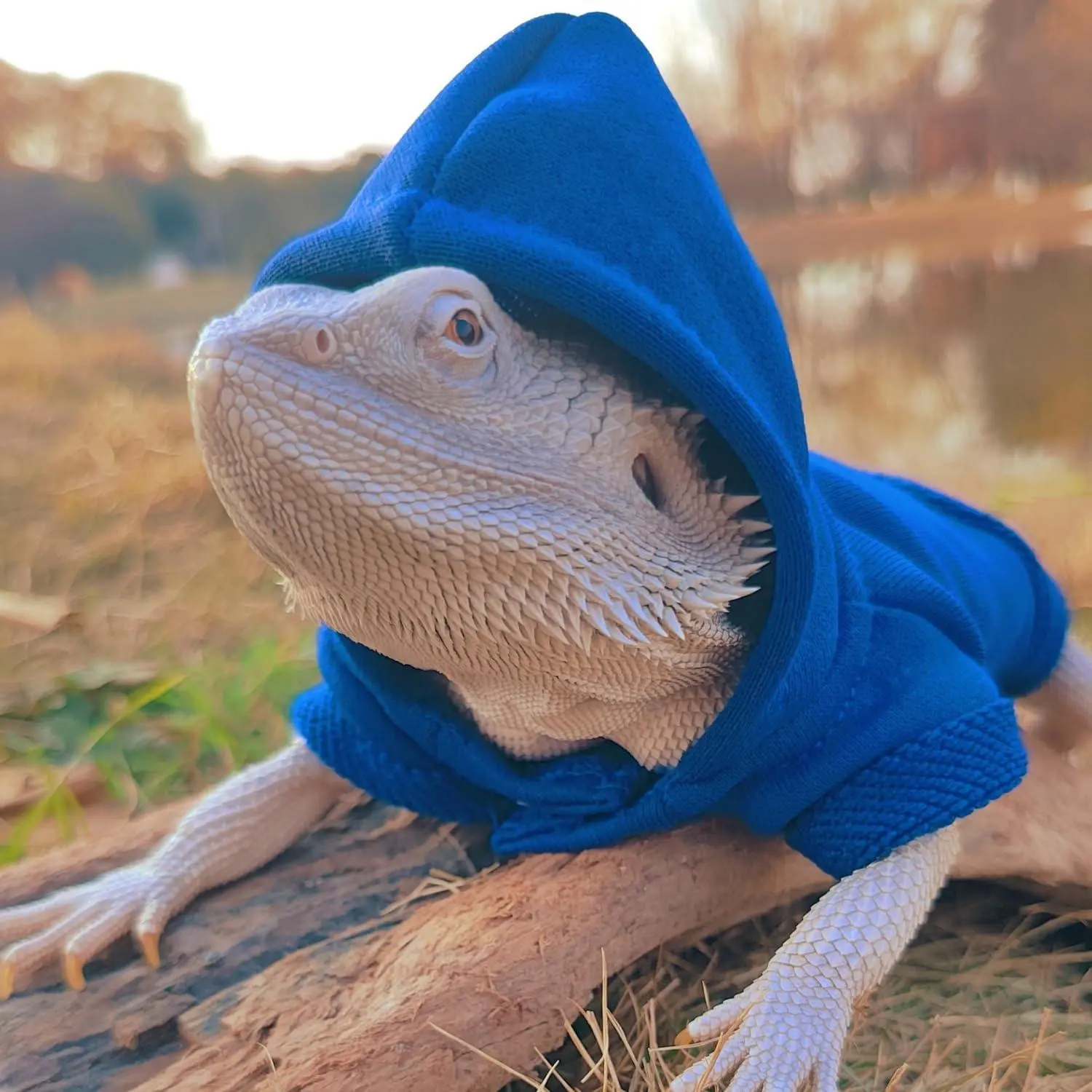 Lizards Clothes for Bearded Dragon - Handmade Cotton Hoodies Warm Sweater Coat Reptiles Apparel Costume Skin Protection Photo for Lizard Bearded Dragon Crested Gecko Chameleon (Blue,Large)