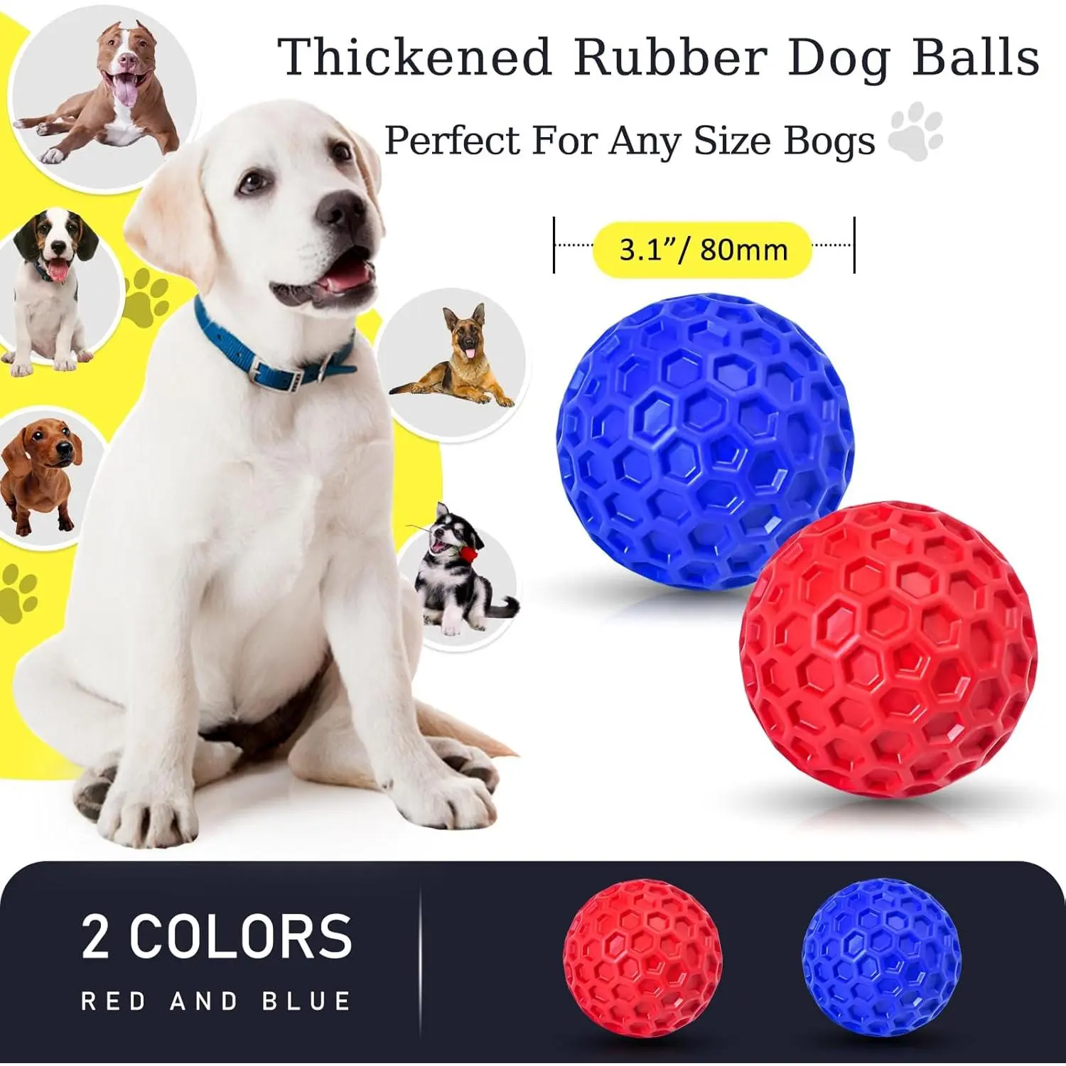 2 Pack Indestructible Squeaky Dog Balls for Aggressive Chewers, Interactive Dog Toys for Teething, Relieving Anxiety. Chew Toy for Large, Medium Breeds, Outdoor Rubber Balls.