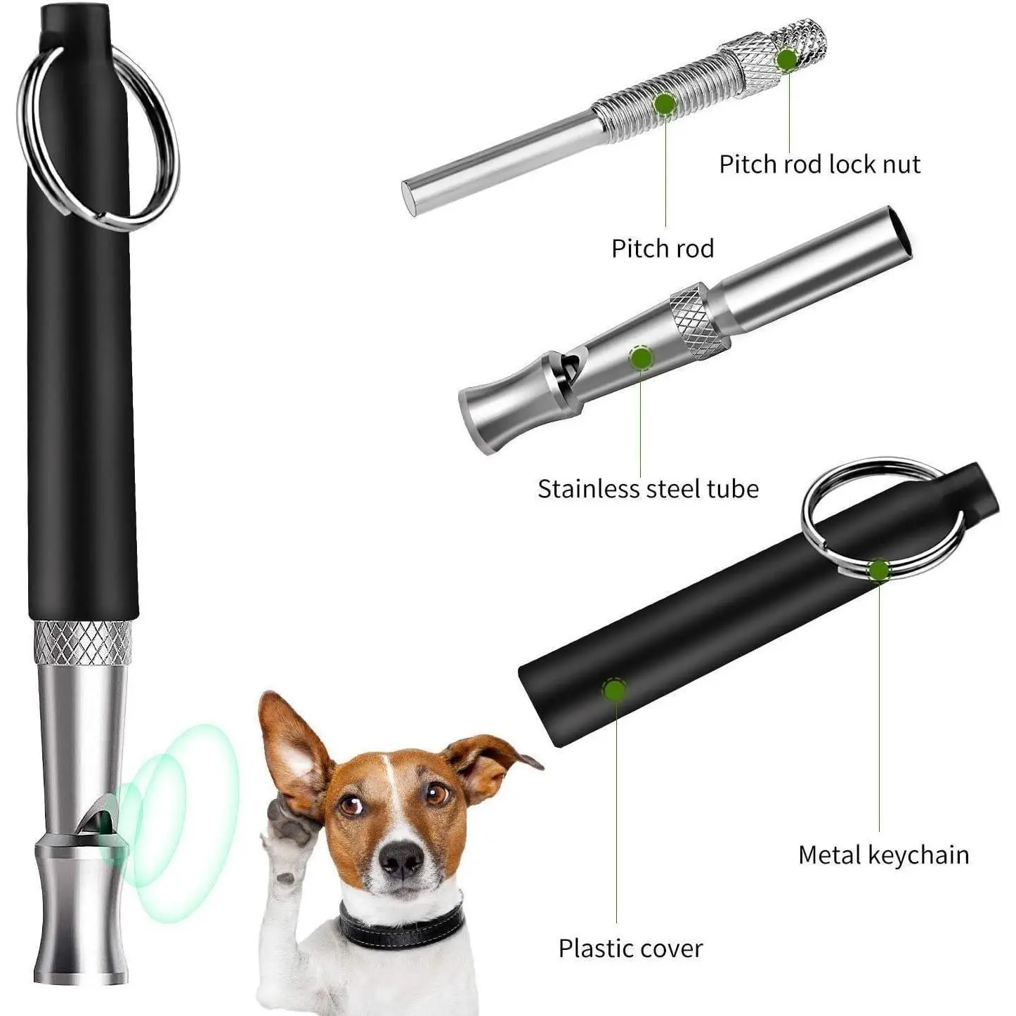 Dog Whistle to Stop Barking, Adjustable Pitch Ultrasonic Training Tool Silent Bark Control for Dogs-2 Free Lanyard Strap with Pack of 2 PCS Pet Whistle
