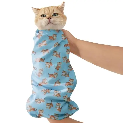 29.5" Cat Grooming Wrap,cat wrap for Cutting Nails,Self-Adhesive cat Swaddle wrap cat Restraint cat wrap Blanket for Medicine, Nail Clipping, Teeth Brushing,White Guitar(Within 16lbs)