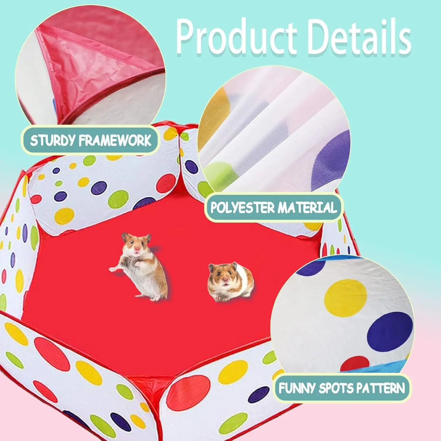 Small Animal Playpen, Portable Guinea Pig Playpen Pet Cage Tent, Waterproof Pop-up Open Pet Tent Metal Wire Yard Fence for Hamster Indoor Outdoor Exercise (Red)