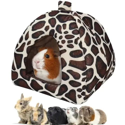 Guinea Pig Bed Rabbit Hideout Warm Fleece Cuddle Cup Washable Winter Sleeping House for Small Pet/Ferret/Chinchilla/Bunny (Strawberry Style)